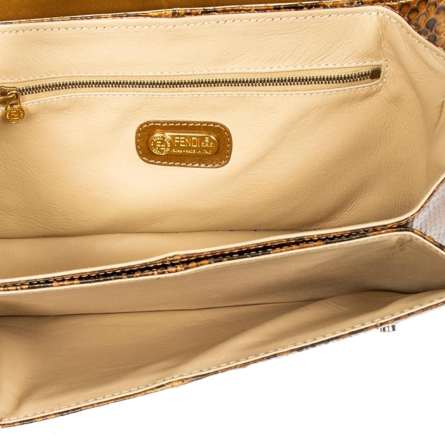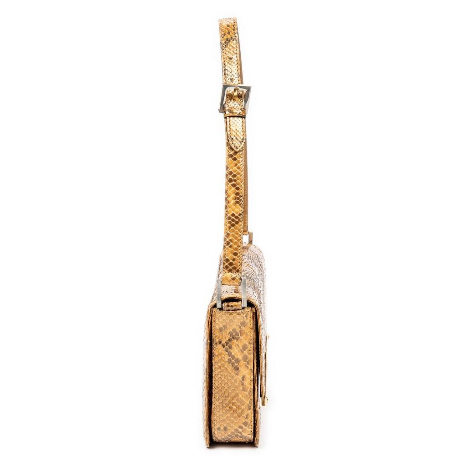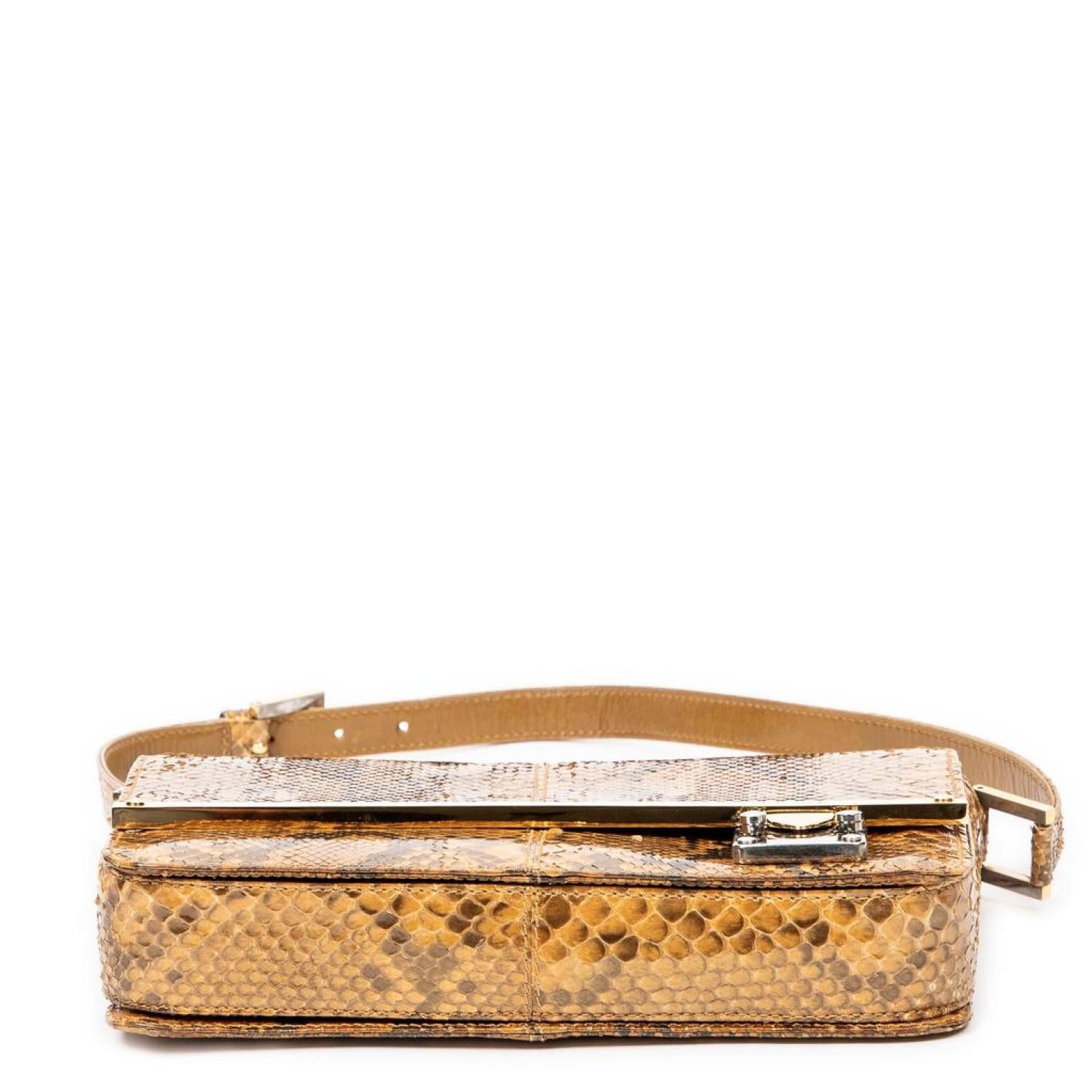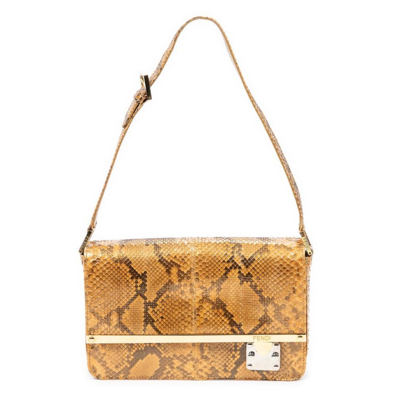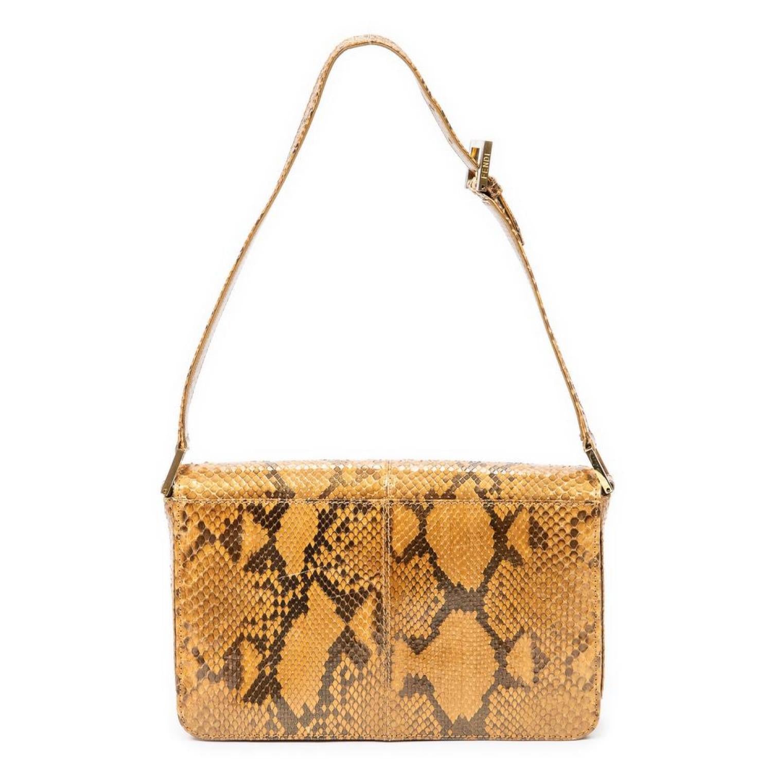 Fendi Shoulder Bag in Gold Python Embossed Leather and Gold hardware. Dimensions - 26*16*5cm. Serial number - None. Inclusions - None.