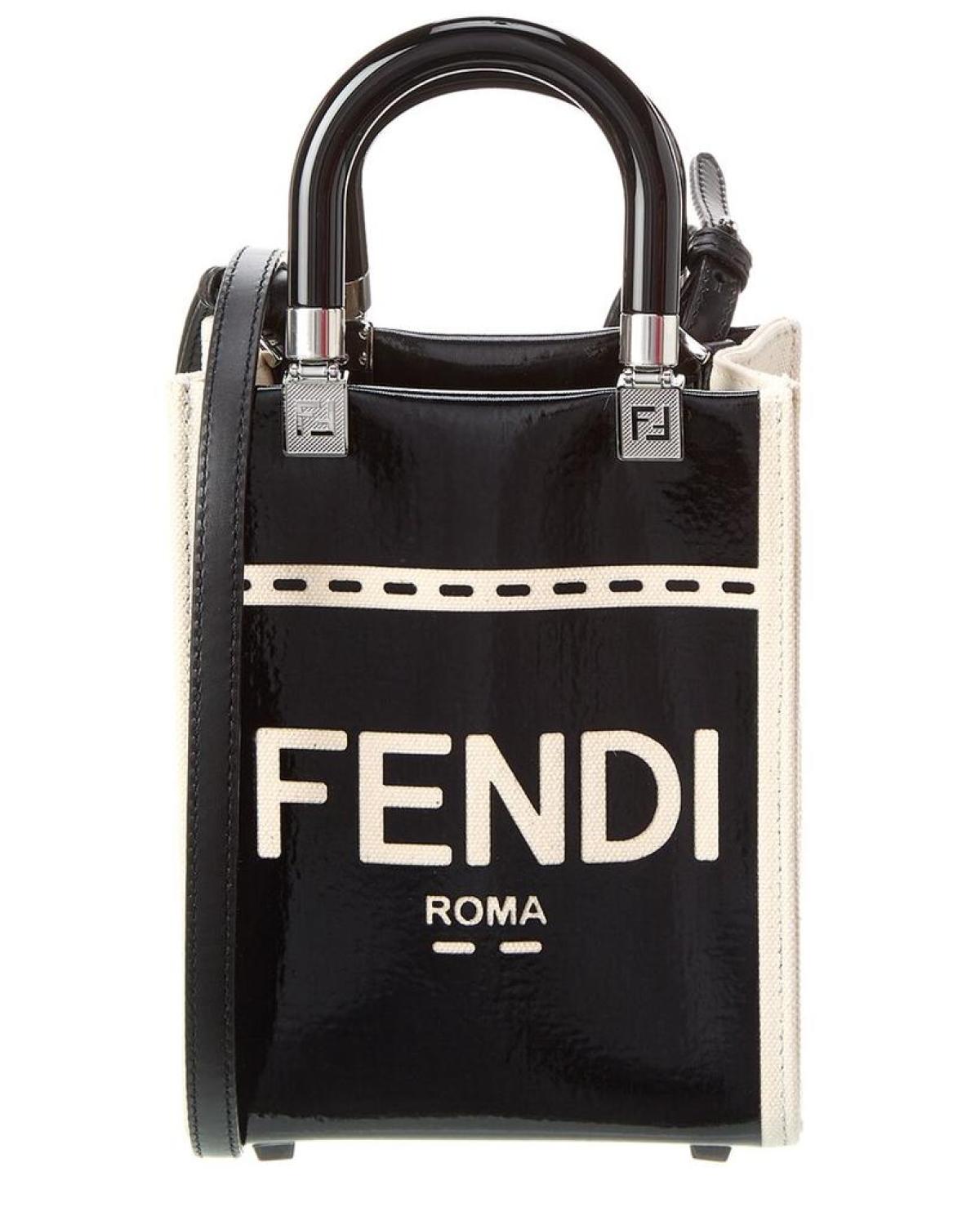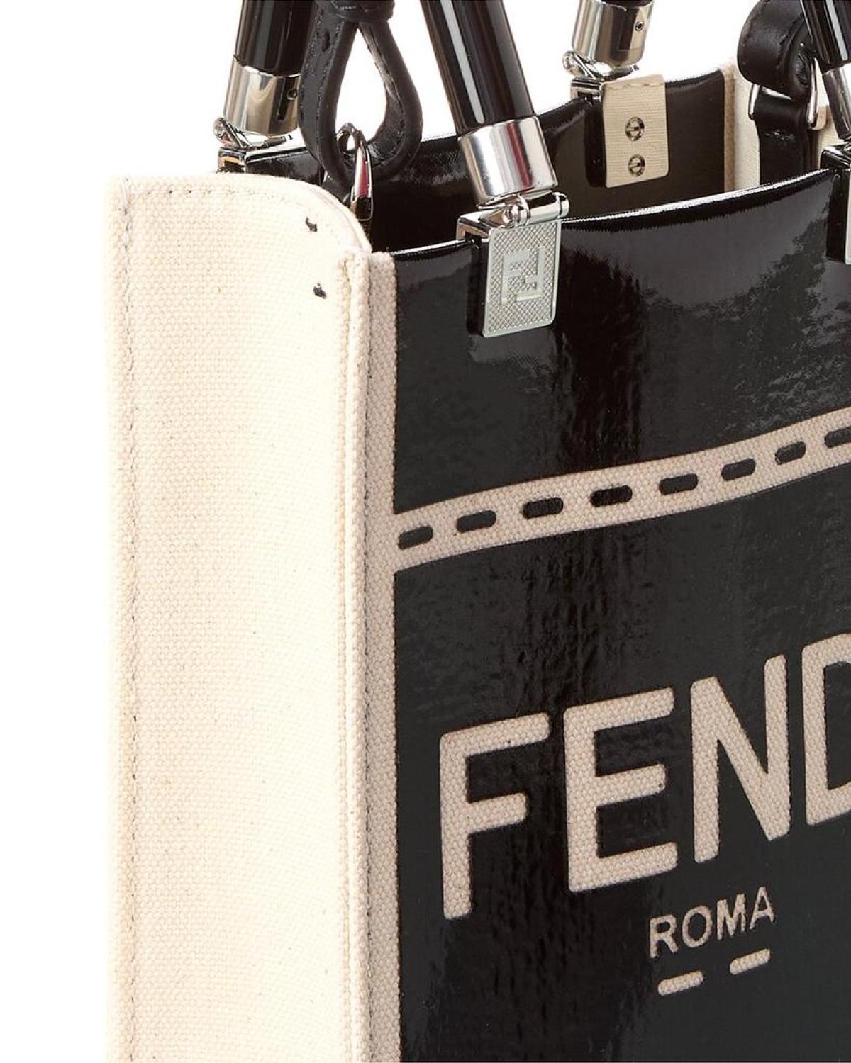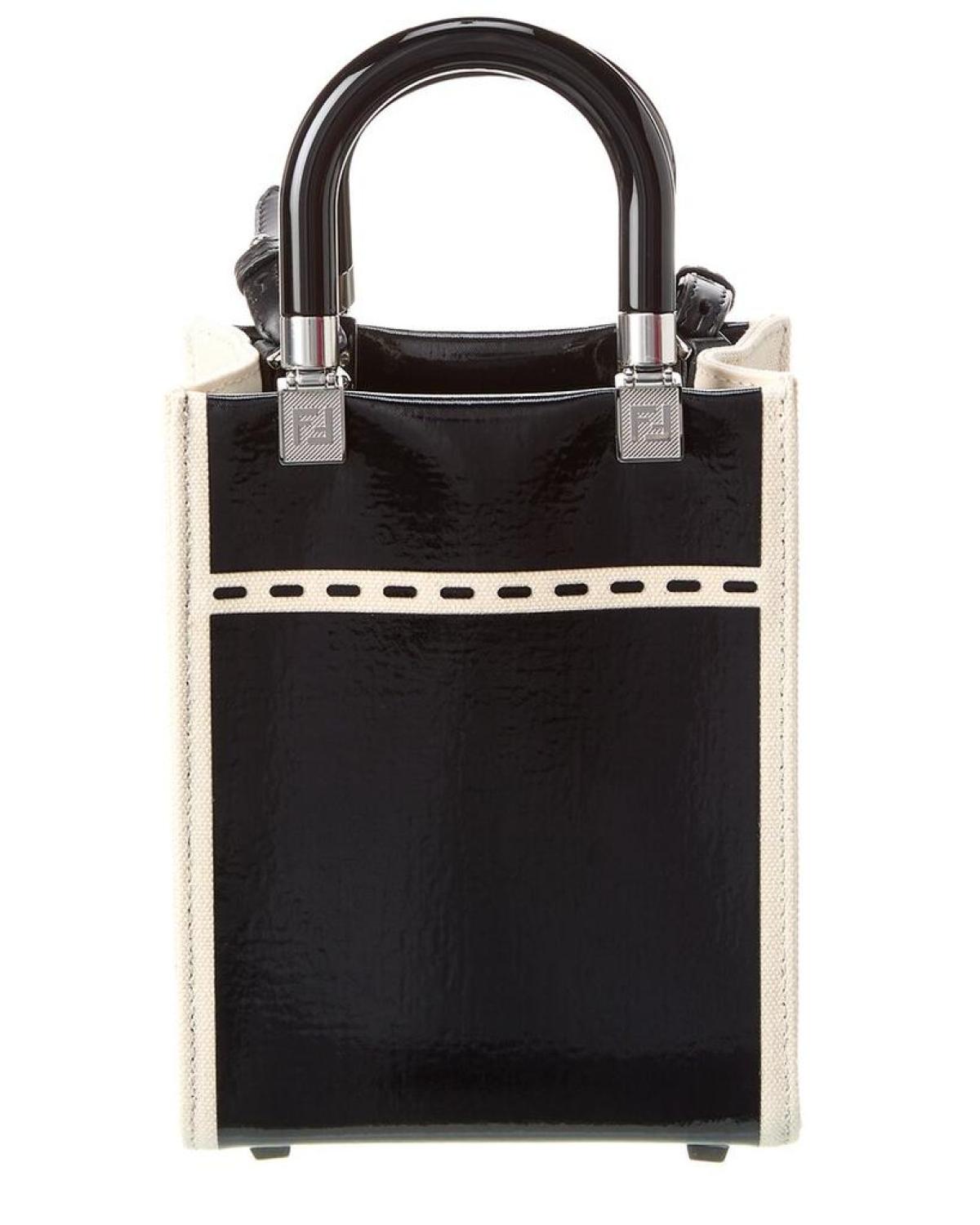 • Introducing the FENDI Sunshine Mini Patent Tote, a stunning addition to our collection of women's handbags/tote-bags. As an innovative and elegant Italian luxury brand, FENDI ensures that every product is made with the highest quality materials and expert craftsmanship. Crafted in Italy, this tote features black and white patent leather with silver-tone hardware and plexiglass top handles that add a touch of sophistication. The fabric lining and open top make it easy to access your belongings, while the removable shoulder strap allows for versatile styling. Measuring 5 inches wide x 6.5 inches high x 2.5 inches deep, and with a top handle drop of 3 inches, this tote is the perfect size for any occasion. Please note that all measurements were taken by hand and are approximate; slight variations may occur. At our store, we stand by the authenticity of every product sold on our site. While in some cases we may purchase merchandise from trusted independent suppliers and not directly from the brand owner, we can assure you that our FENDI Sunshine Mini Patent Tote is 100% genuine. Elevate your look with this stunning handbag today.