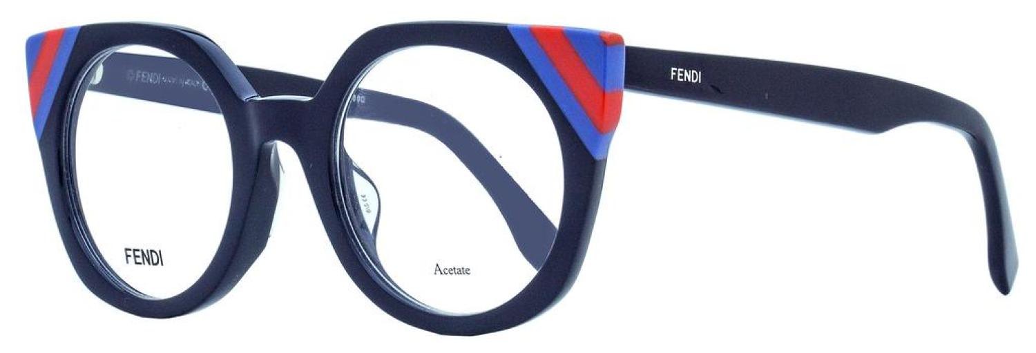 The Fendi 0246 optical frames feature a square frame shape with a subtle cat eye profile for women. These Acetate eyeglasses feature colored accent stripes at the frame edges. The Fendi eyeglass collection features an array of shapes and styles that are daring yet express a refined chic character. Please note these eyeglasses are provided with Demo Lenses in order to demonstrate the final appearance of your frames. Please visit your local Optometrist or Optician to replace with optical quality lenses. Frame Material - Plastic (Acetate) Frame Color - Dark Blue Lens Color - N/A Size - 48-22-145 Made in Italy Includes original case and cloth