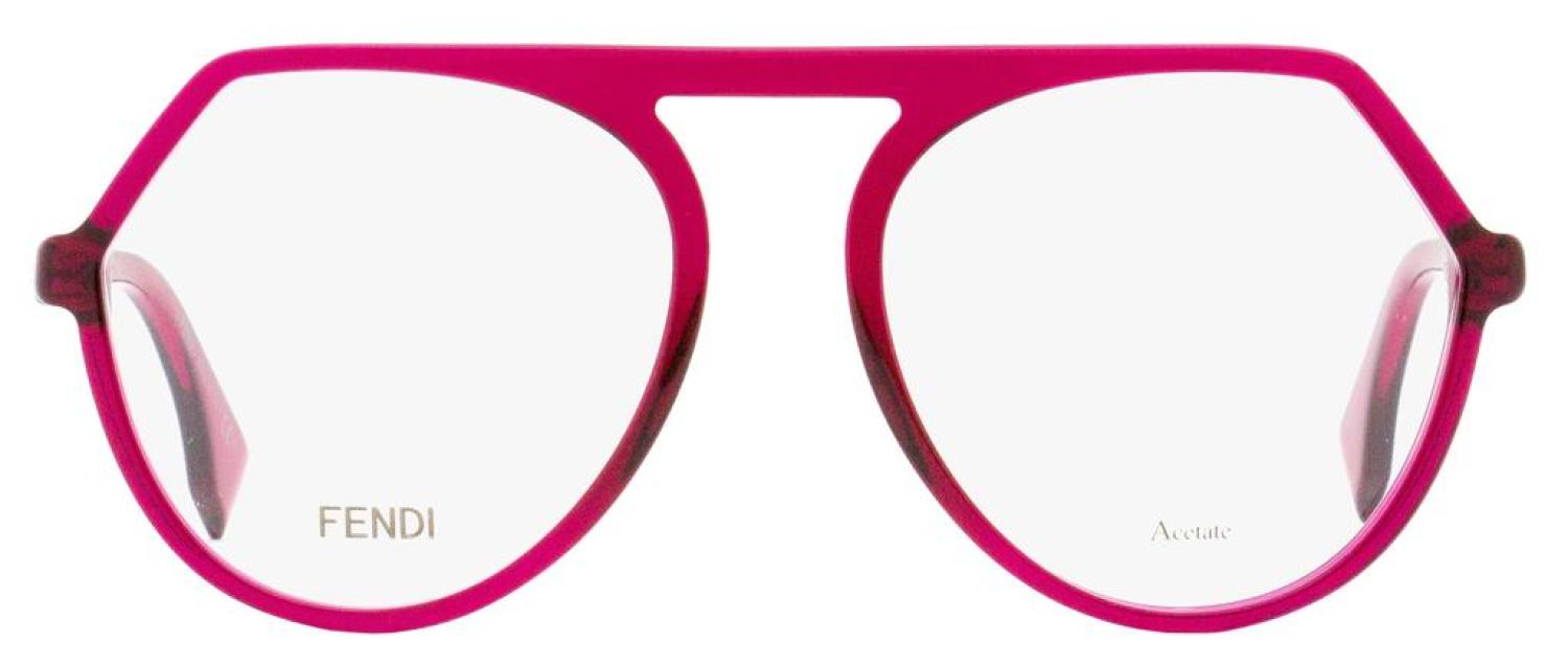 The Fendi 0385 optical frames feature a large oval lens shape with a geometric side profile for women. The Optyl front is accented with acetate temples featuring the Fendi Roma Amor branding on the temples. The Fendi eyeglass collection features an array of shapes and styles that are daring yet express a refined chic character. Please note these eyeglasses are provided with Demo Lenses in order to demonstrate the final appearance of your frames. Please visit your local Optometrist or Optician to replace with optical quality lenses. Frame Material - Plastic (Acetate/Optyl) Frame Color - Red Lens Color - N/A Size - 53-17-140 Made in Italy Includes original case and cloth