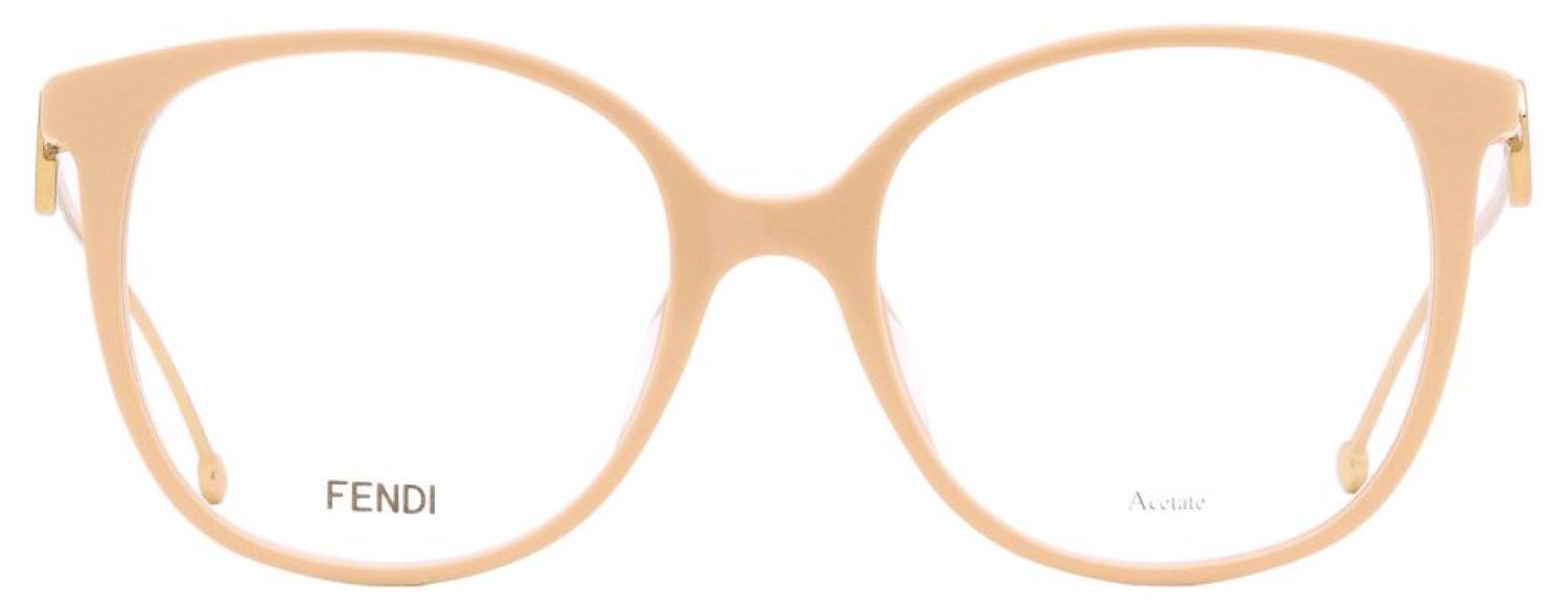 The Fendi 0425 alternative fit optical frames feature a soft square lens shape with single metal bridge for women. The Acetate frame is accented with thin metal temples featuring the brand's hallmark "F is Fendi" logo. This model features a deep saddle bridge to provide an Alternative Fit; ideal for those with a less prominent nose bridge The Fendi eyeglass collection features an array of shapes and styles that are daring yet express a refined chic character. Please note these eyeglasses are provided with Demo Lenses in order to demonstrate the final appearance of your frames. Please visit your local Optometrist or Optician to replace with optical quality lenses. Frame Material - Plastic (Acetate)/Metal Frame Color - Nude/Copper Lens Color - N/A Size - 54-19-140 Made in Italy Includes original case and cloth