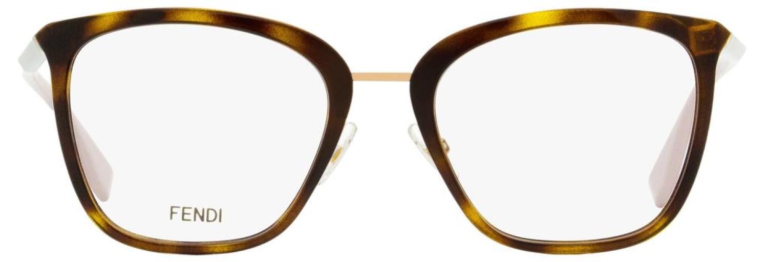 The Fendi 0455 optical frames feature a bold square lens shape with single metal bridge for women. The frame is accented with dual color tone temples featuring subtle Fendi branding on both sides. The Fendi eyeglass collection features an array of shapes and styles that are daring yet express a refined chic character. Please note these eyeglasses are provided with Demo Lenses in order to demonstrate the final appearance of your frames. Please visit your local Optometrist or Optician to replace with optical quality lenses. Frame Material - Plastic (Injected/Acetate)/Metal Frame Color - Havana/Powder Pink Lens Color - N/A Size - 53-20-145 Made in Italy Includes original case and cloth