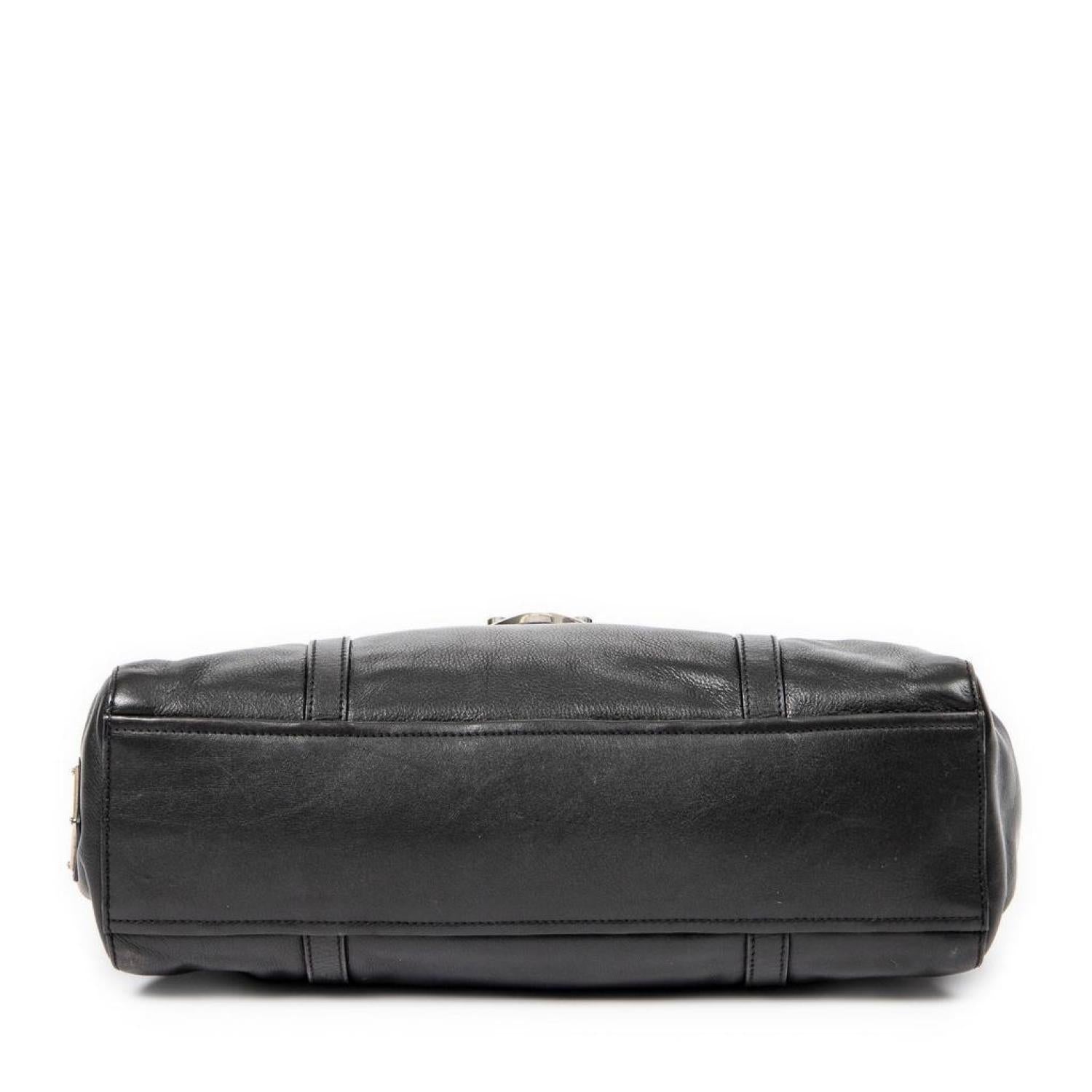 Prada Shoulder Bag in Black Smooth Calfskin Leather and Silver hardware. Dimensions - 31*16,5*11cm. Serial number - 104. Inclusions - Key in Clochette.