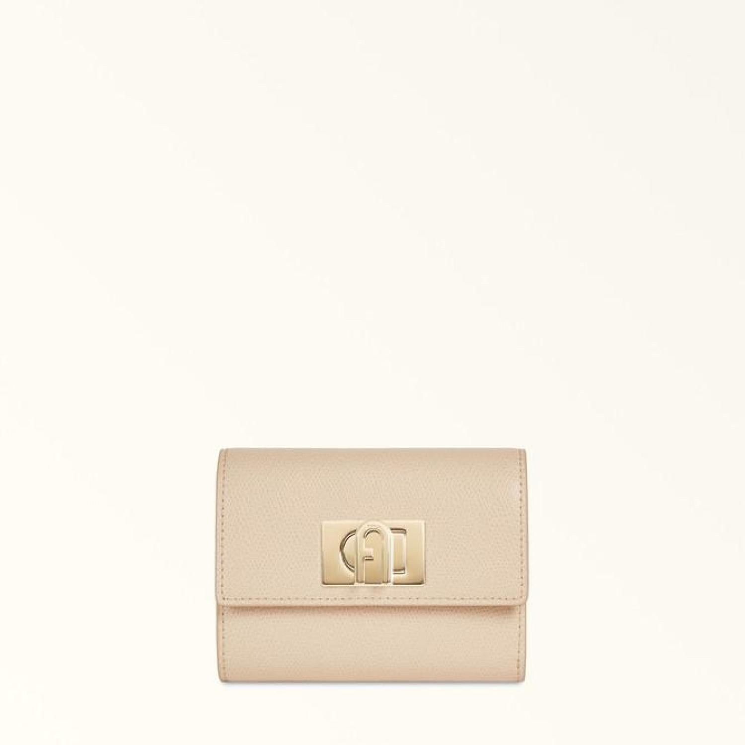 - The Furla 1927 wallet comes with medium-sized volumes and is made of elegant textured leather. A functional accessory that allows for storing documents and money thanks to the four credit card slots; one big compartment and two side pockets for bills and receipts; and one inner coin pocket with metal zip. It features a bow-shaped metal turnstile closure with Furla logo engraved on the front. - Light gold galvanised finish - Flap length: 6.5 cm Dimensions 5.12 x 3.54 x 0.79 (w x h x d) material Textured Leather composition 100% Leather logo typology Logoed metal closure Plating Gold edge Tone-on-tone Seams Tone-on-tone Height 3.54 in product code PCW4ACO_ARE000_1007_B4L00