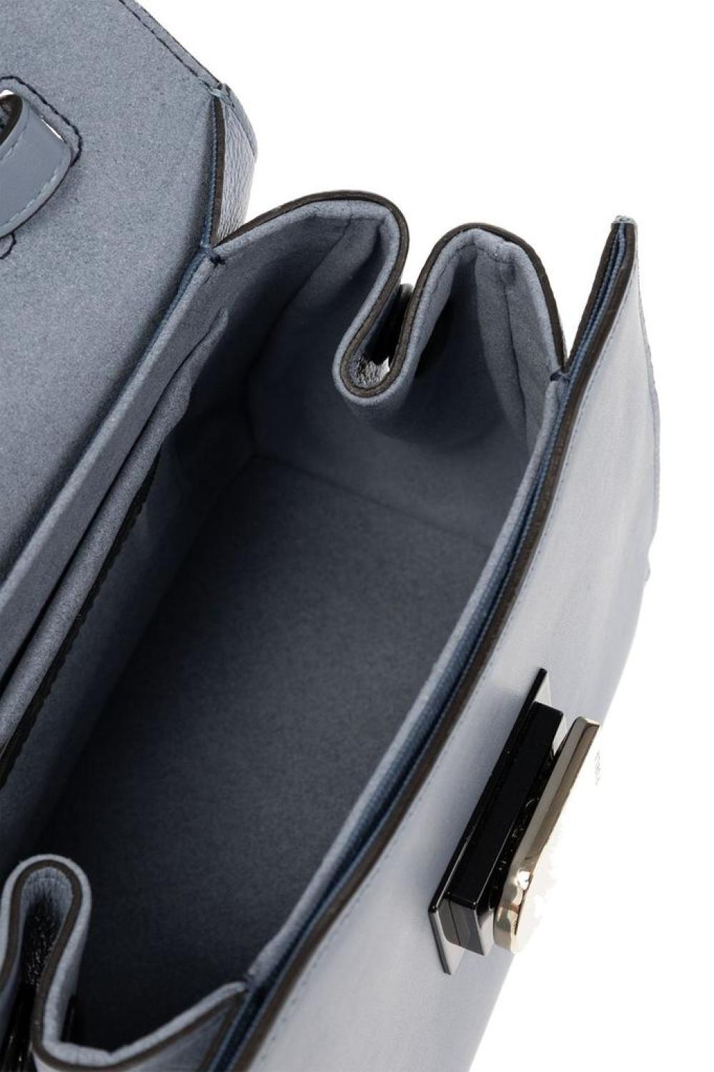 Dimensions: Width: 22cm, Height: 16cm, Depth: 16cm, Strap: 43.5cm, Handle: 10.5cm  100% Calf Leather Made in Romania  Designer Model Number: WB00610BX0053 Designer Colour: CELESTIAL