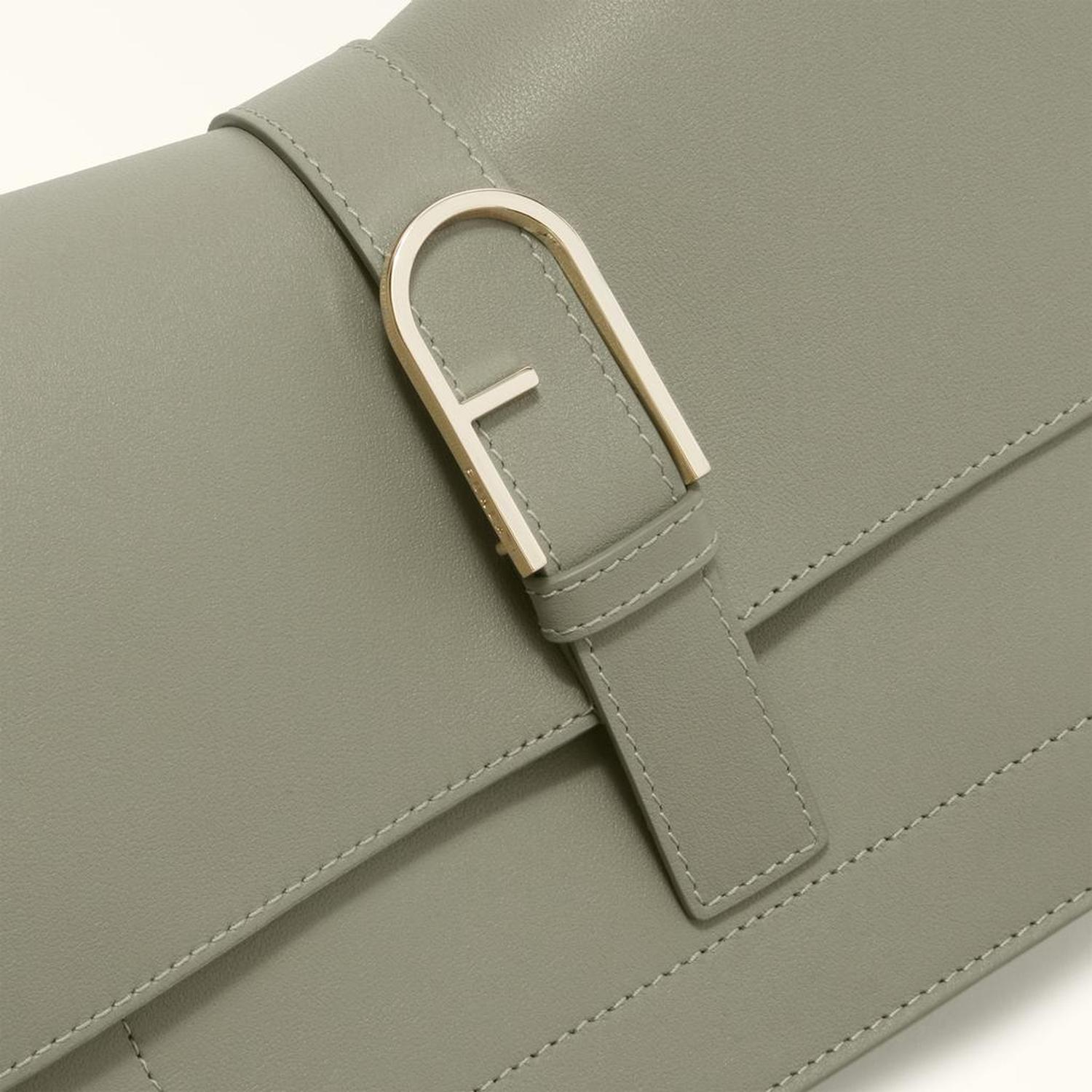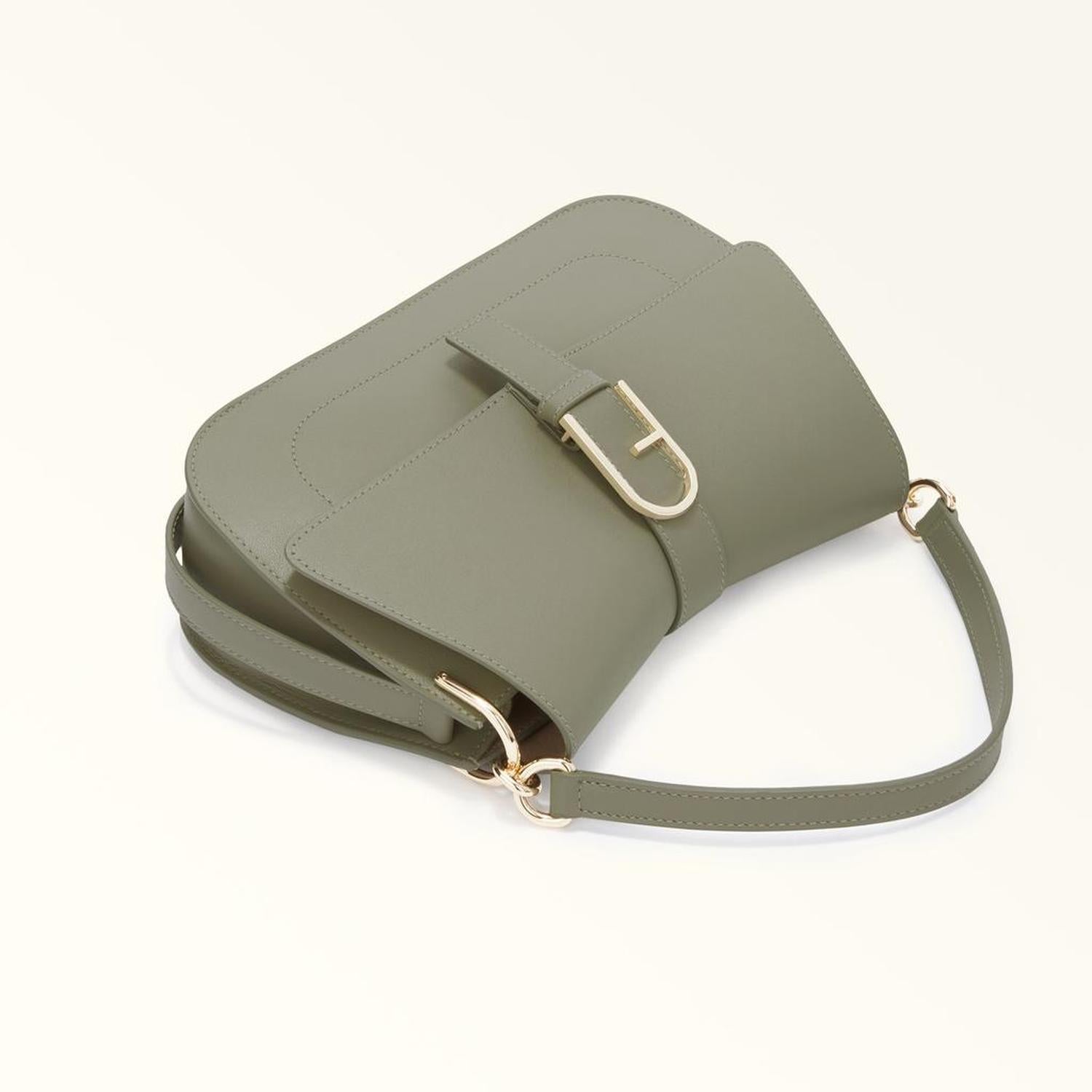 • A sleek yet functional piece, this elegant Furla Flow bag is distinctive with its compact trapezoid shape and curved lines. An ideal companion for any occasion because of the versatility it affords, it can be carried by hand, worn on the shoulder or crossbody. It is crafted from soft and smooth nappa leather, and features a decorative buckle in the shape of the iconic Arch logo.