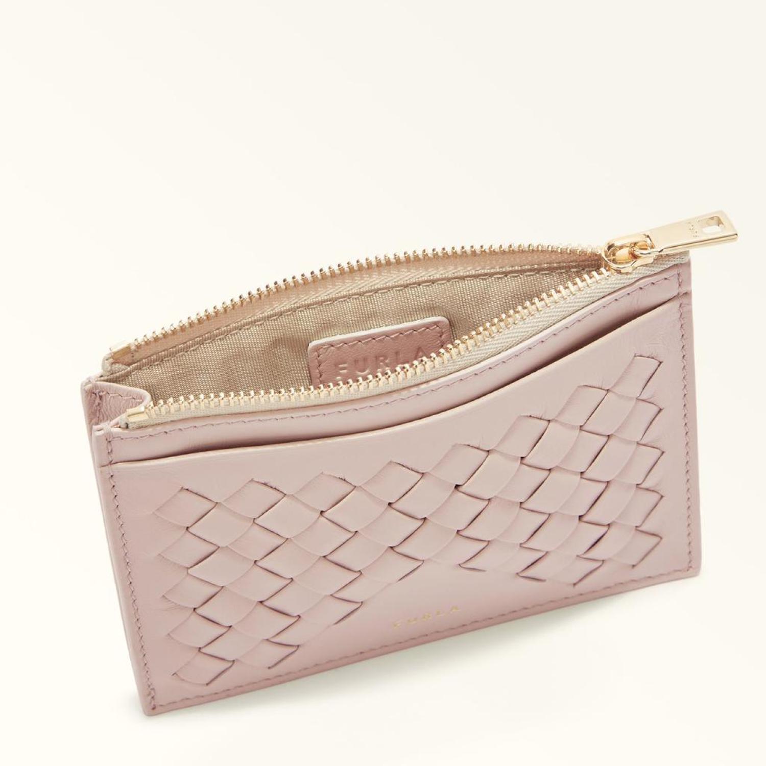 • With beautiful craftsmanship that features skilfully woven leather, this Furla Gerla card case is roomy and functional. Styled in luxurious nappa leather, it is slim enough to slide into any handbag.