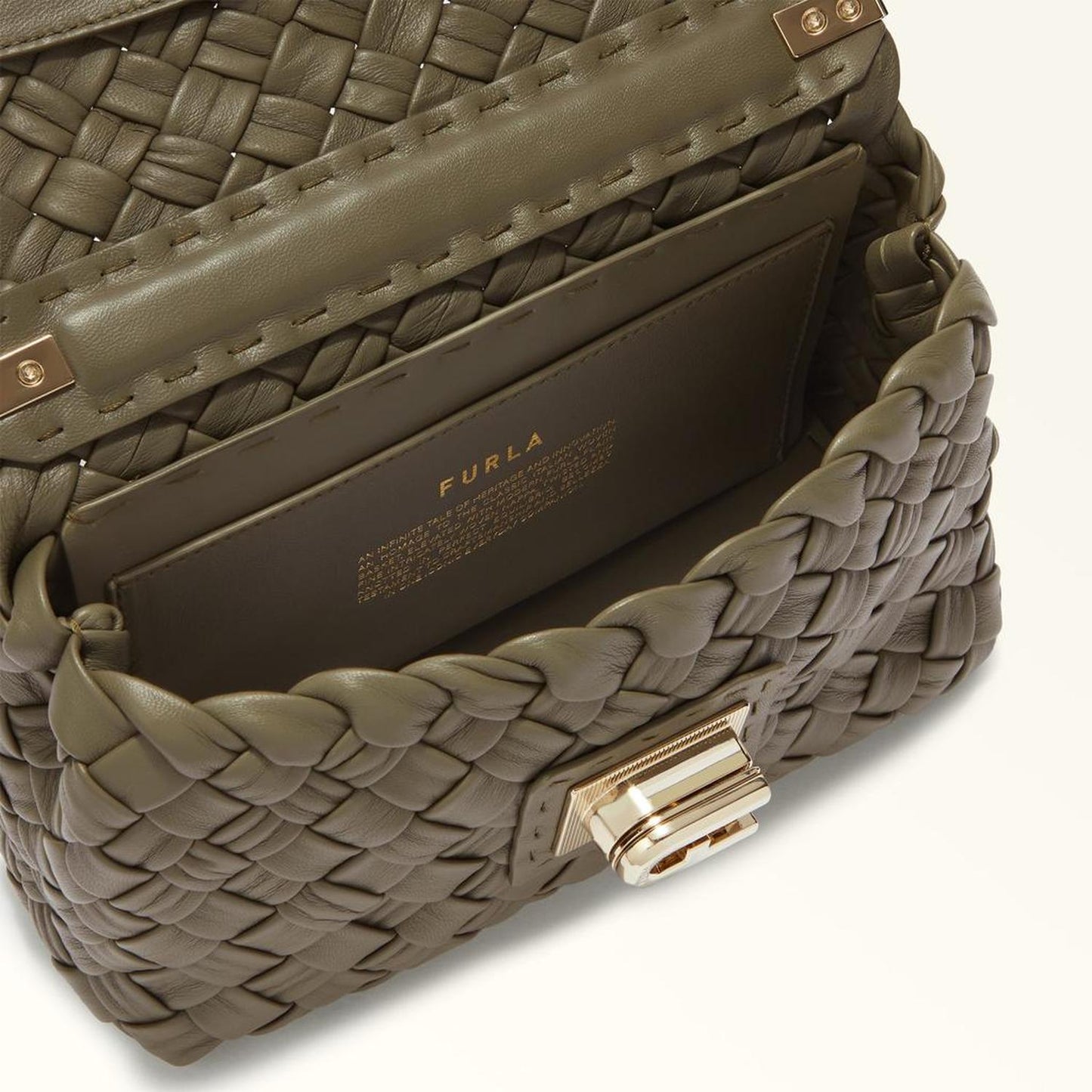 • With its eye-catching and elegant woven nappa leather, this Furla Gerla mini bag features a refined craftsmanship technique with the typical attention to detail. Whether you wear this soft, small piece on the shoulder or carry it by hand, it will keep all your essentials within easy reach.