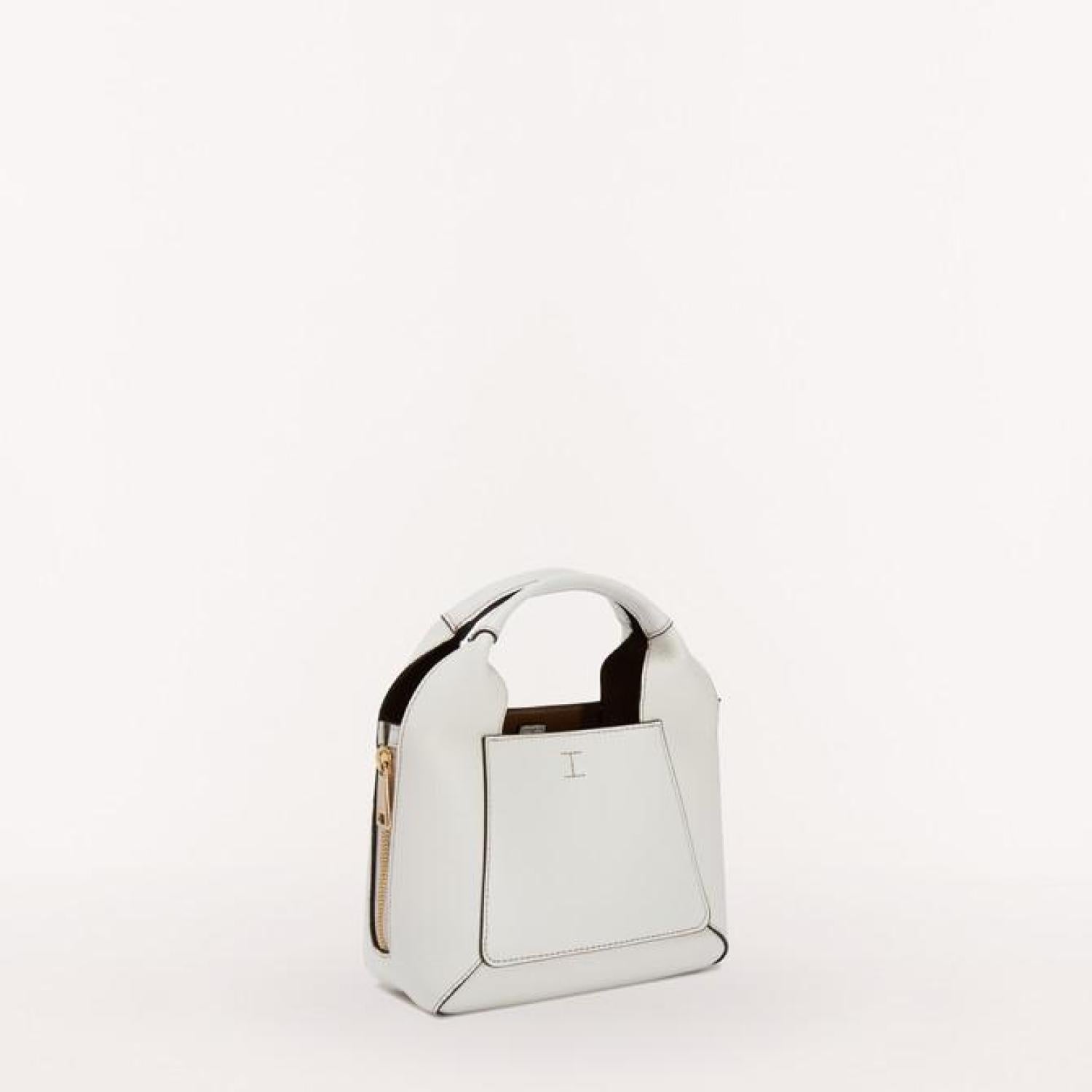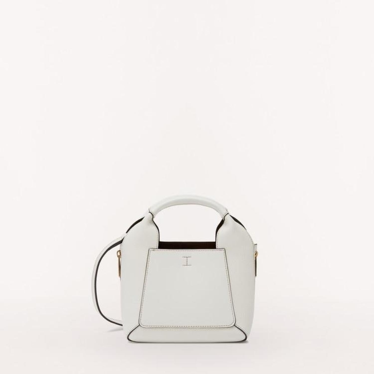 • Furla Gilda is mini shopping bag made in a combination of colour-block grained Eracle leather and grained Roma leather. The sophisticated and elegant accessory features wrapped handles and an adjustable and removable strap so it can be worn as either a handbag or as a crossbody bag. The Furla logo punched on the front completes the bag with a unique touch.