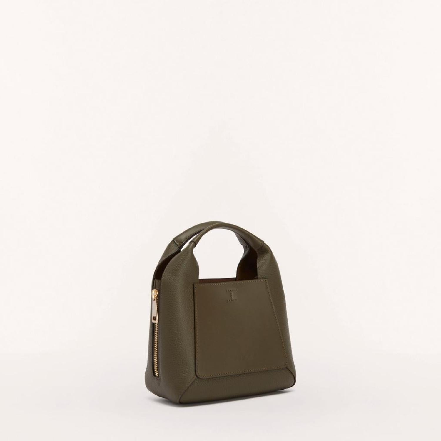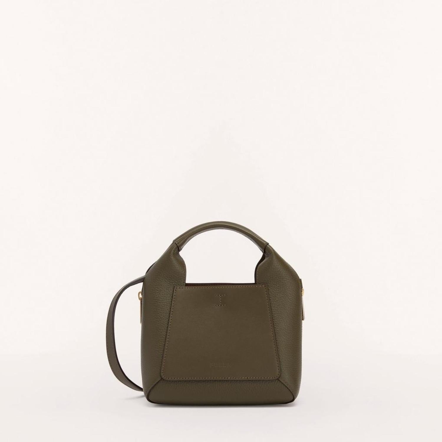 Furla Gilda is a mini shopping bag made from a combination of grained colour-block calfskin and soft calfskin. The sophisticated and elegant accessory features wrapped handles and an adjustable and removable strap so it can be carried by hand or crossbody. The Furla logo punched on the front completes the bag with a unique touch. - Side zips to adjust the size of the bag- Contrasting inner pockets, including one zipped pocket- Top closure with inside hook- Galvanised light gold finishes Dimensions 7.48 x 5.71 x 3.94 (w x h x d)