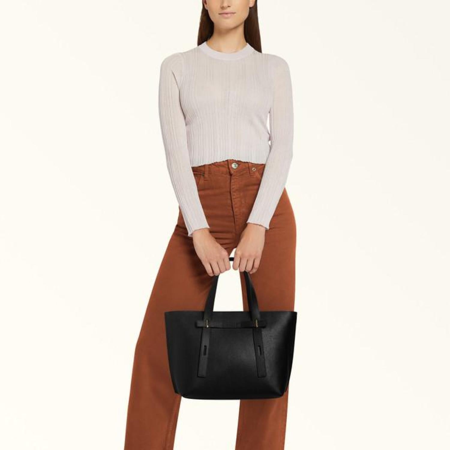 This Furla Giove tote is perfect for your all-day, everyday needs with its minimalist rectangular shape and soft spacious interior. Crafted from luxurious grained leather, it can be carried by hand or on the shoulder, by adjusting the long handles, and they can even be changed for alternative handles to really personalise your look.  - Two open inside pockets- Inside zip pocket- Two hooks on the front to adjust the handles- Top zip closure- Furla logo punched on the front