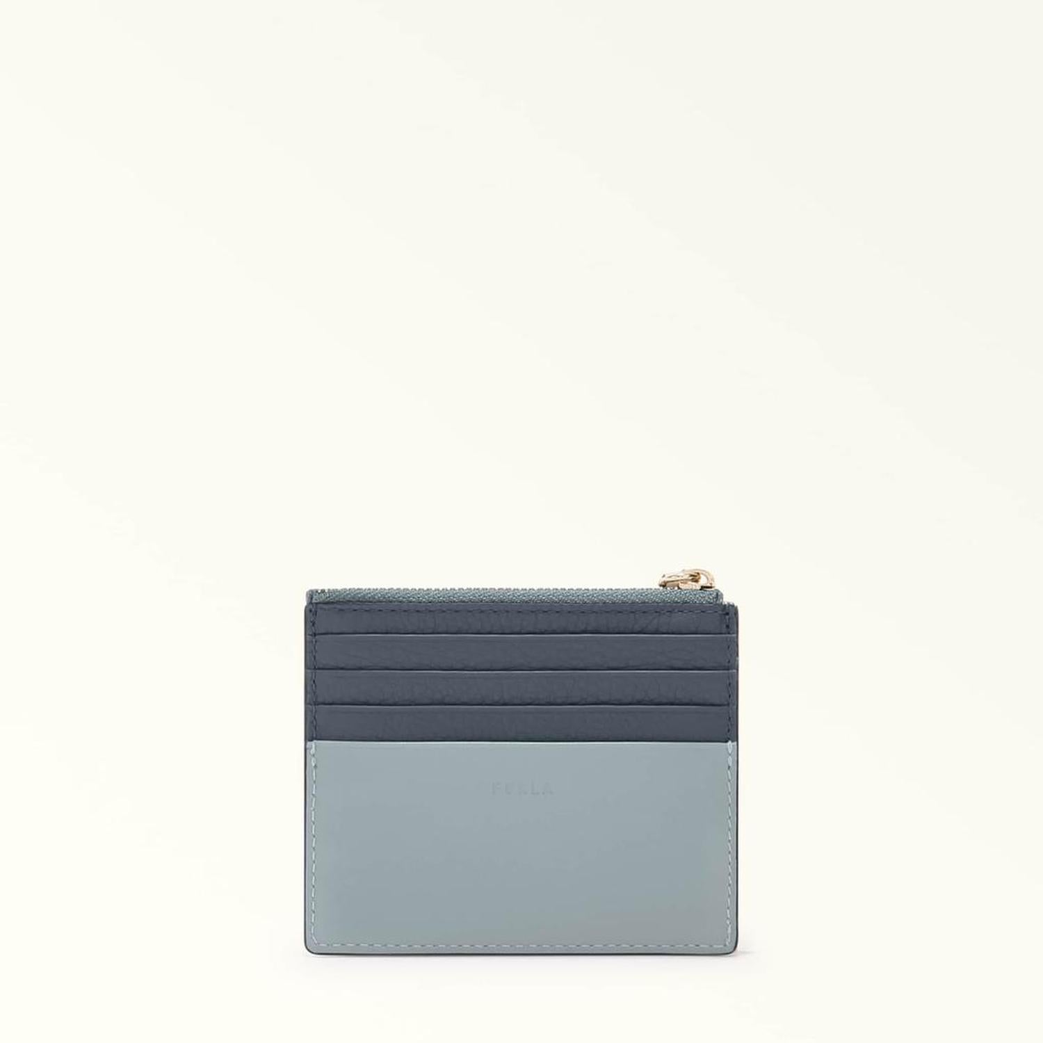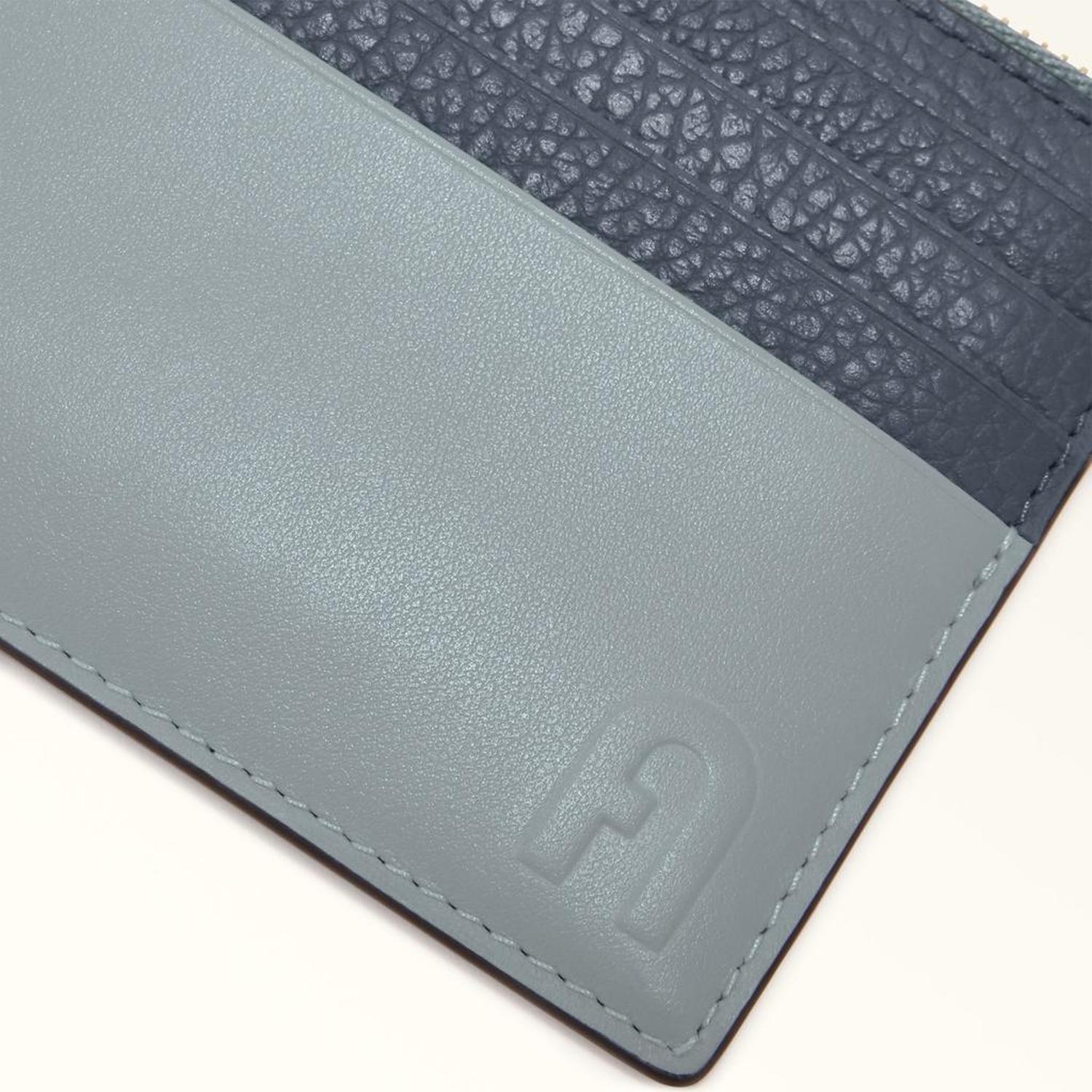 • A versatile, compact wallet that you can store in any bag. Furla Grazia stands out for its mixture of materials: smooth leather and contrasting grained trims with a colour-block effect. Complete with a small metal snap hook with side chain, it attaches to accessories with ease.