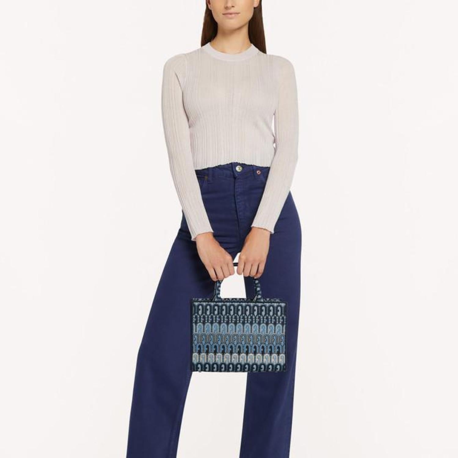 • Furla Opportunity is a small shopping bag featuring a double handle. The fabric with a jacquard-embossed ethnic motif Arch logo adds a unique touch to the model. A comfortable and elegant accessory to carry with you during your free time.