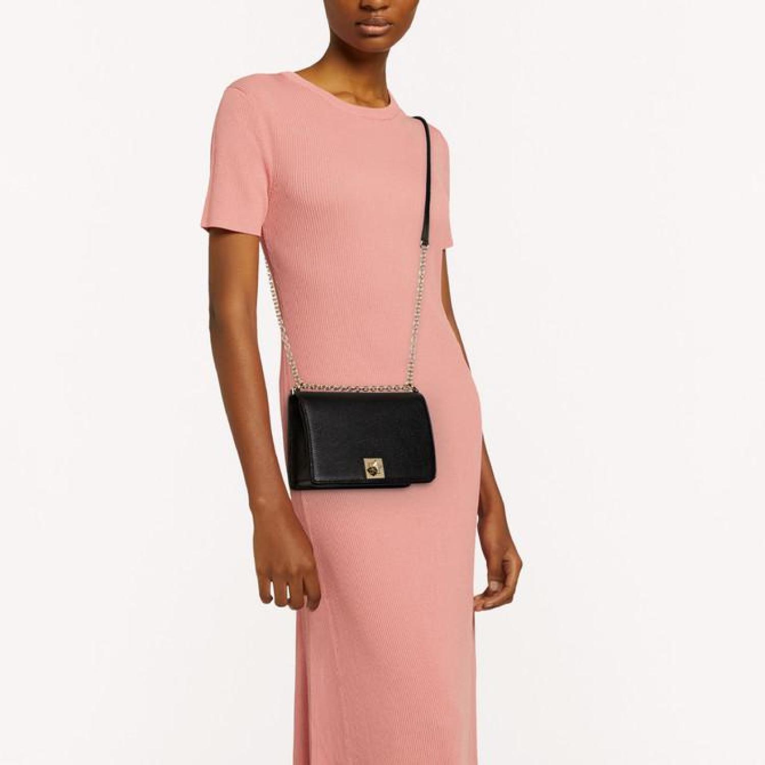 • Furla Paloma is a mini crossbody bag made of grained leather. The bag features a sliding chain strap with a leather insert so you can also wear it on the shoulder.