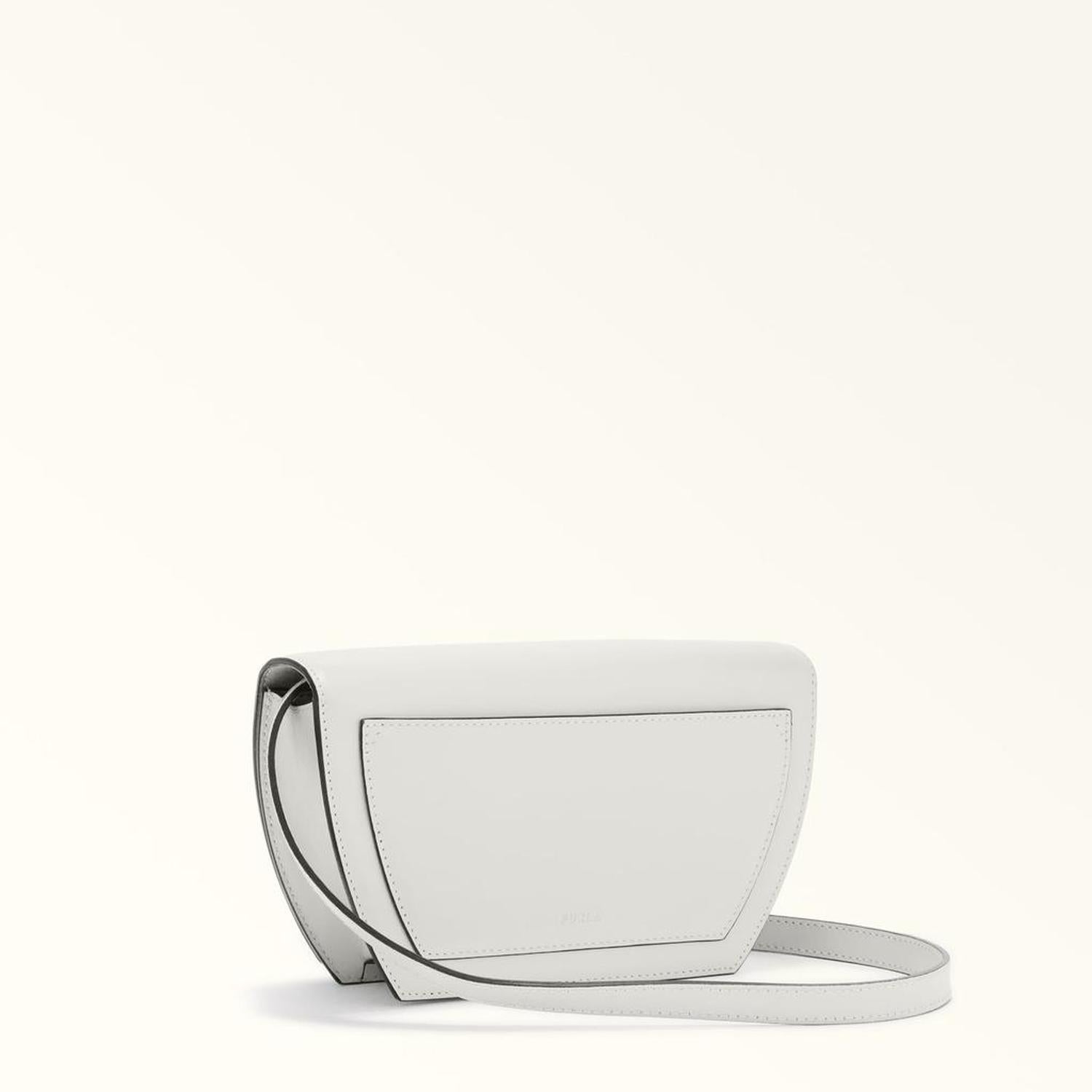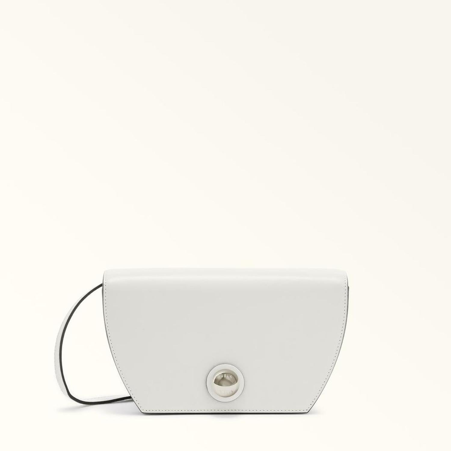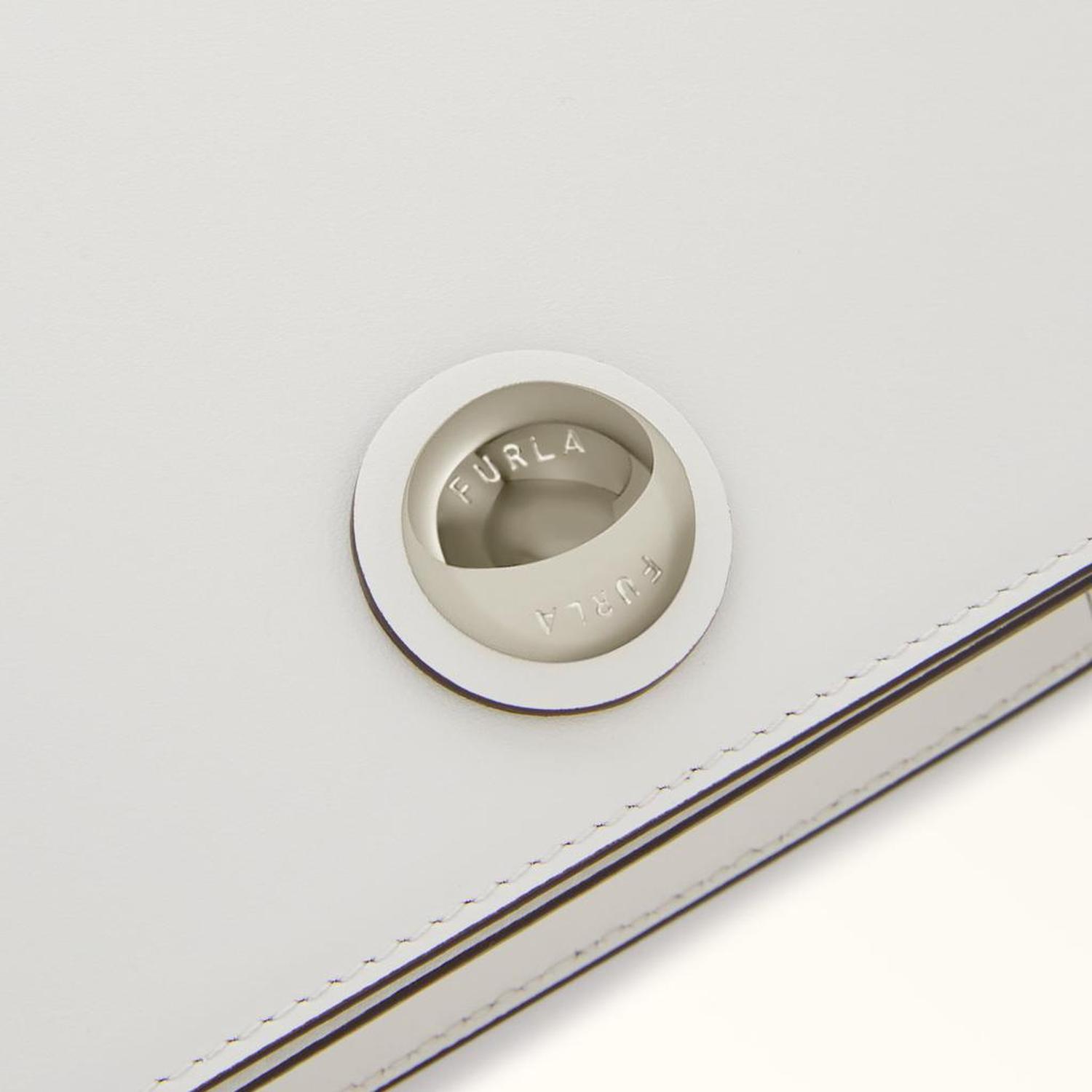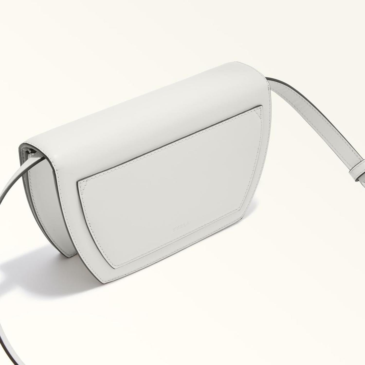 • The mini geometric Furla Sfera crossbody bag is small but mighty. Made of buttery soft leather, it features a new galvanised spherical closure paying tribute to Furla's iconic hallmark. With an adjustable and detachable matching strap, this accessory can also be worn as a practical belt bag using the loops on the back.