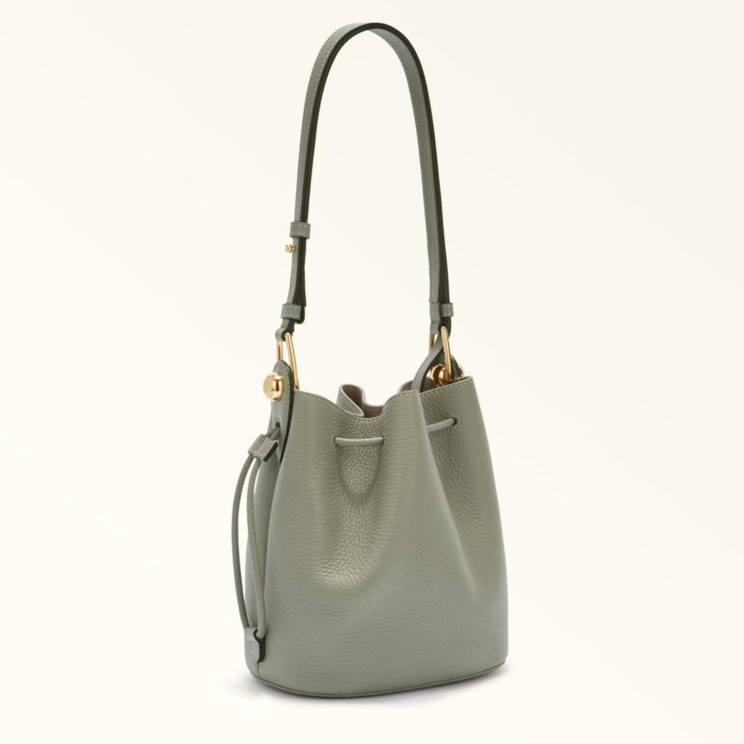 With mini dimensions made for off-duty plans, the Furla Sfera bucket bag is both elegant and practical. Made of exquisite textured leather, it features an adjustable smooth calfskin strap with stud buttons for a comfortable crossbody fit. The Sfera hardware embellishing either side adds some eye-catching sparkle. - Drawstring closure
