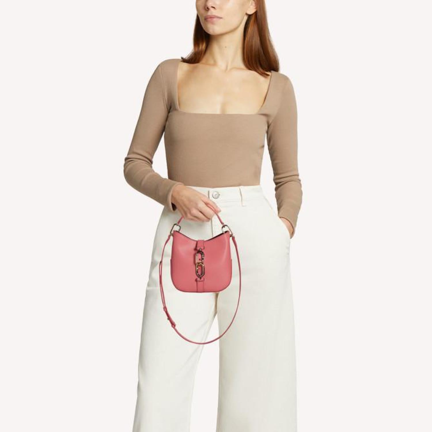 Furla Sirena is a mini hobo bag made of soft Roma calfskin. The 1960s-inspired silhouette features a double buckle closure in the shape of the Furla Arch logo with two-toned metal finishes. With its removable handle and long, adjustable shoulder strap, the accessory is perfect to both carry by hand or wear as a crossbody. - Open inside pocket - Embossed Furla logo on the side - Galvanised gold and ruthenium metal finishes Dimensions 8.07 x 7.68 x 2.56 (w x h x d) material Soft Calf Leather composition 100% Leather Height 7.68 in product code WB00381_AX0733_9023_0963S