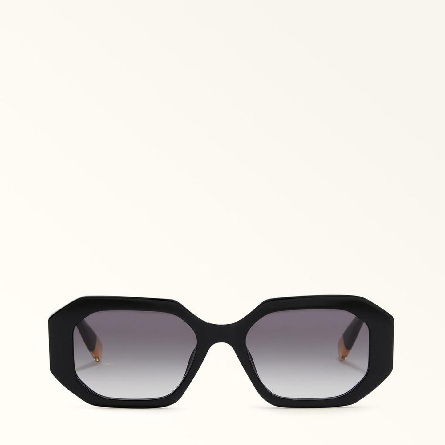 • A geometric shape and bold frame for these SFU815 Furla Sunglasses. The bold frame made entirely of acetate is embellished with the brand's lettering logo engraved on the sides of the temples.