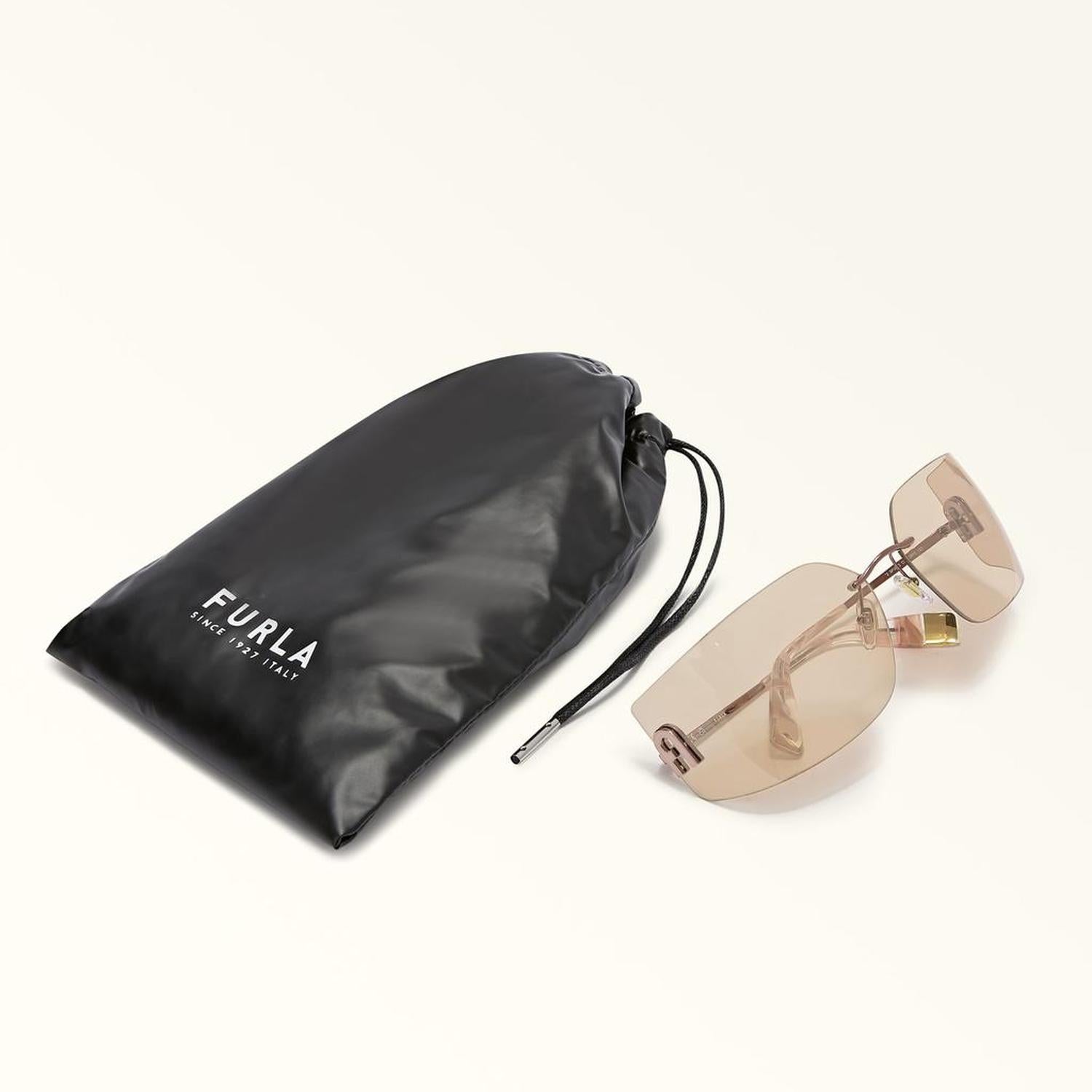 • The SFU843 Furla Sunglasses feature a rectangular shape with elegant, contemporary charm. Their slim metal frames are extremely lightweight and end in temple tips made from the same acetate as the Arch logo on the outer lens edges.