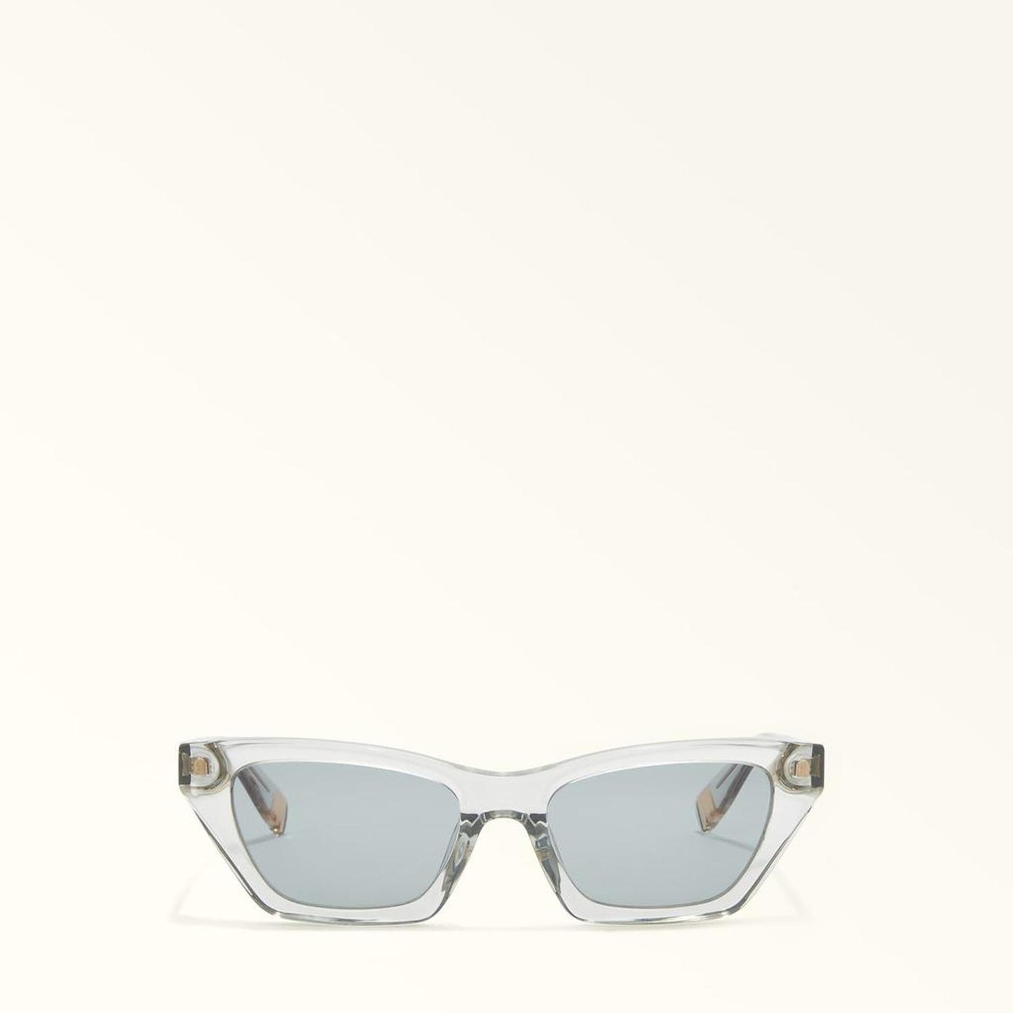 Add a trendy touch to your look with the sleek geometric lines of these SFU777 Furla Sunglasses. They stand out with their butterfly frame and faceted rims in transparent acetate, with logo lettering adorning the temples. - Gradient lenses