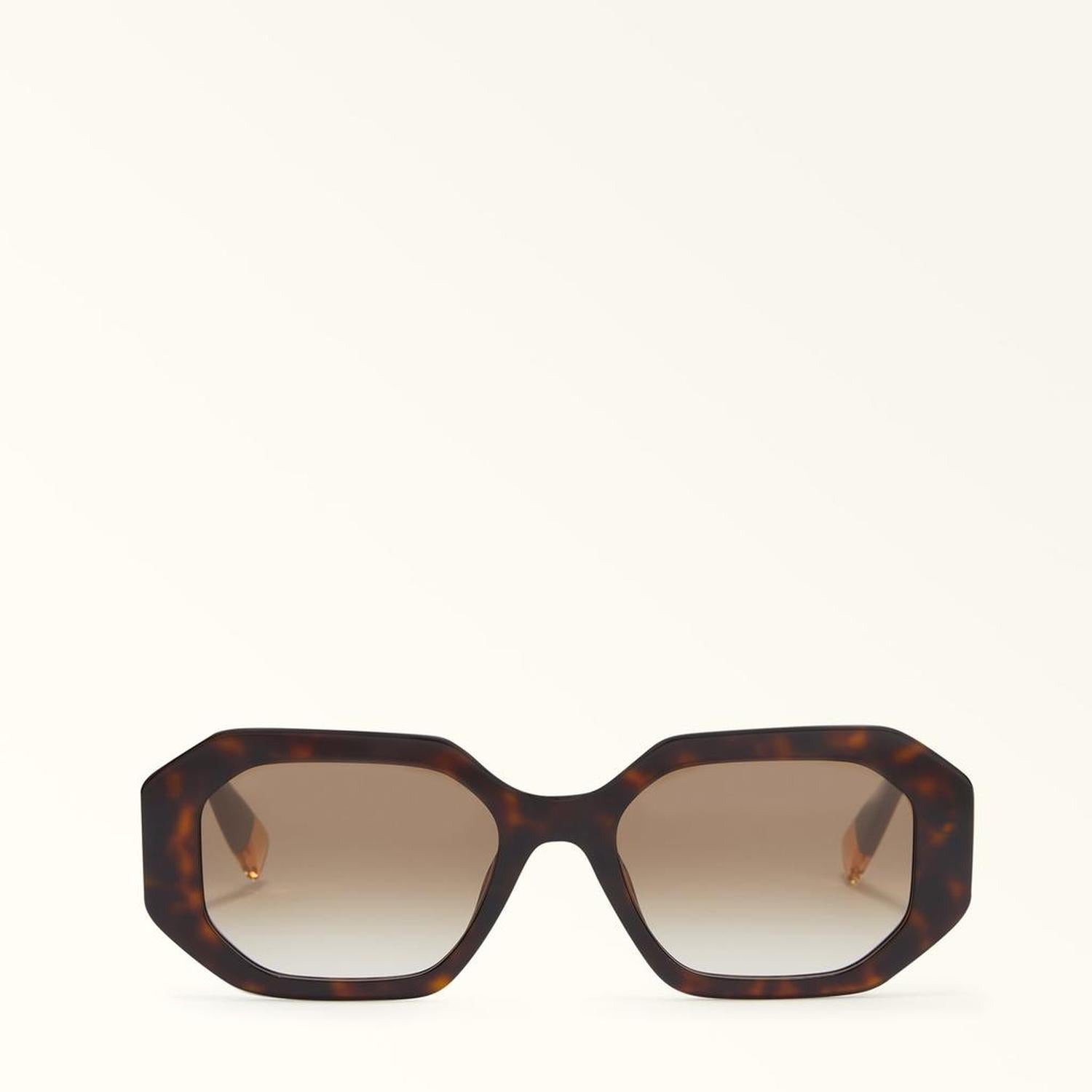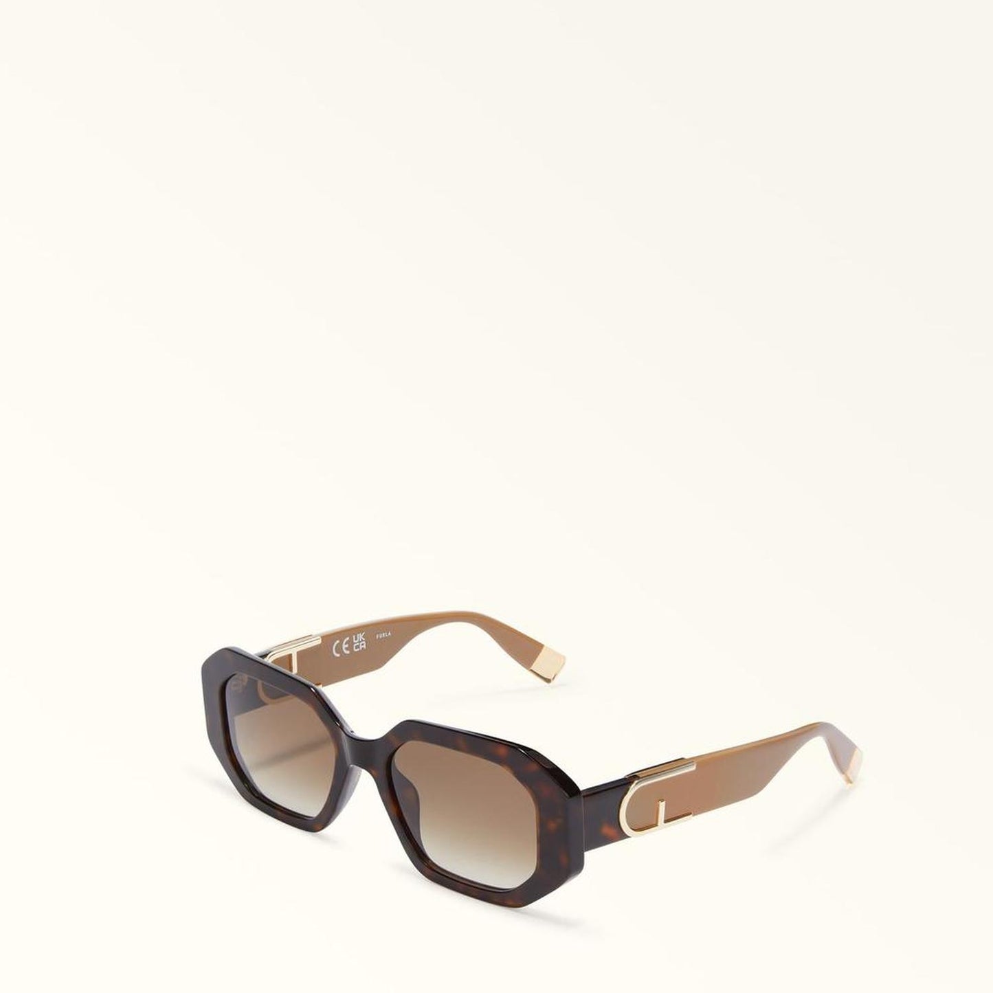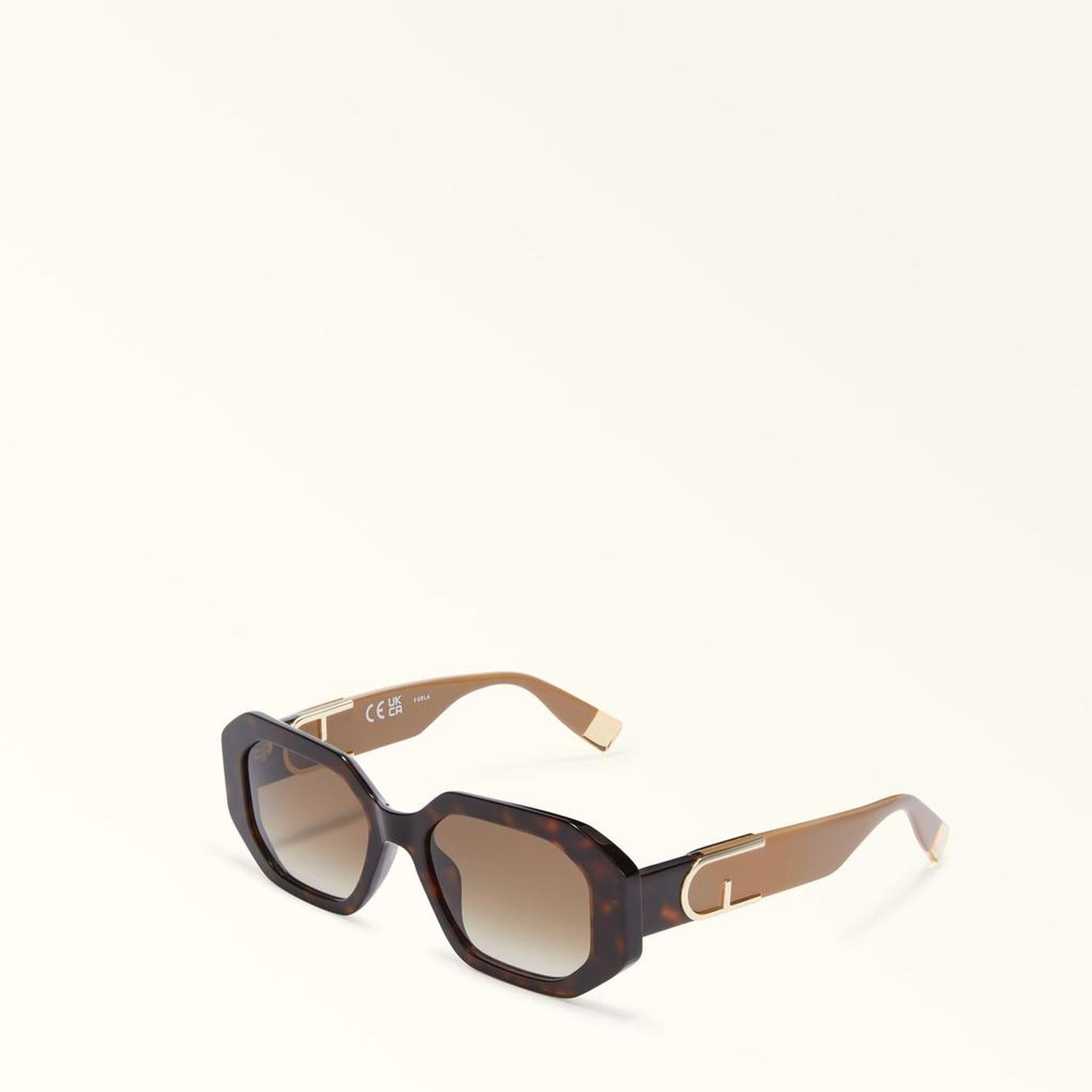 • These elegant SFU815 Furla Sunglasses feature a geometrically shaped front for a sophisticated and contemporary look. The generously sized design is made of acetate with an elegant colour-block effect. The contrasting temples feature the subtle and minimalist Arch logo in shiny metal inspired by the Furla Flow line.