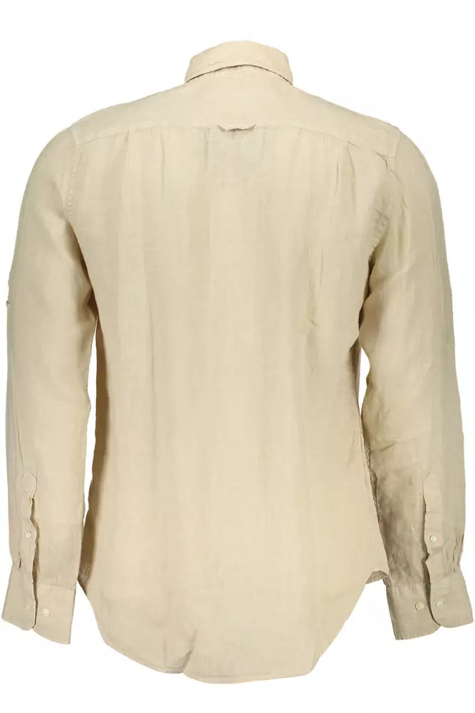 Elevate your wardrobe with the Gant Regular Long Sleeve Shirt, a testament to timeless style and comfort. Crafted from 100% breathable linen, this beige shirt boasts an Italian collar, a structured double pocket design, and 1 button cuffs that add a dash of sophistication to your ensemble. The iconic Gant logo subtly adorns the garment, ensuring your look resonates with brand prestige. Perfect for any occasion where the dress code calls for a smart touch, this shirt is sure to be a staple in your collection.