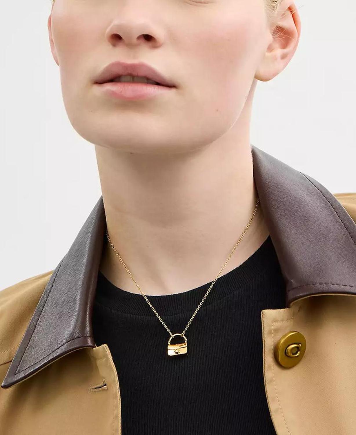 • Refined chain necklace featuring iconic handbag pendant with signature sculpted C hardware perfect for every day.