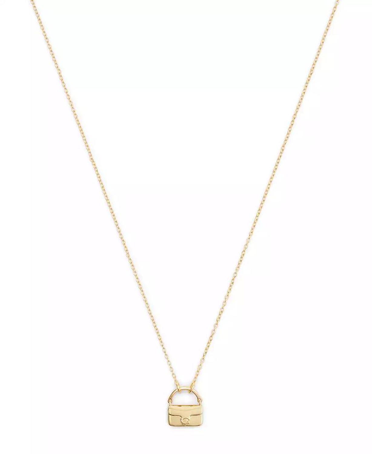 Refined chain necklace featuring iconic handbag pendant with signature sculpted C hardware perfect for every day.