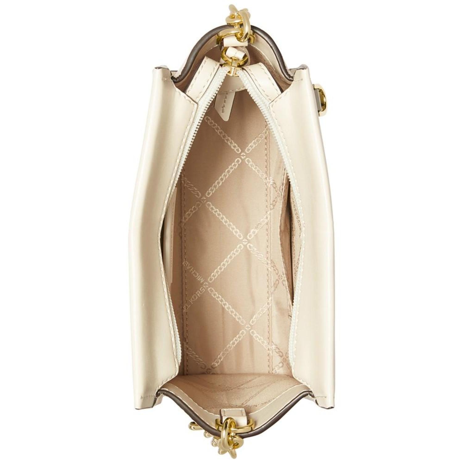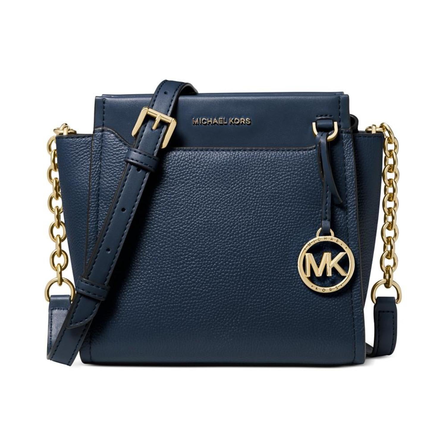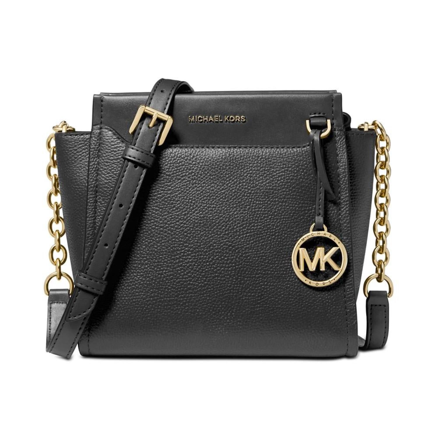 Crafted in gorgeous leather, the Graham Small North South Messenger by MICHAEL Michael Kors lends sophistication to everyday style. Small sized bag; 9"W x 7-3/4"H x 3-1/2"D (width is measured across the bottom of handbag); 1.10 lbs. approx. weight Silhouette is based off 5'9" model 19-3/4"L adjustable strap Zippered closure Gold-tone hardware & exterior snap pocket Interior slip pocket & 3 card slots Leather; lining: polyester; trim: polyurethane, cotton, polyester Spot clean Imported