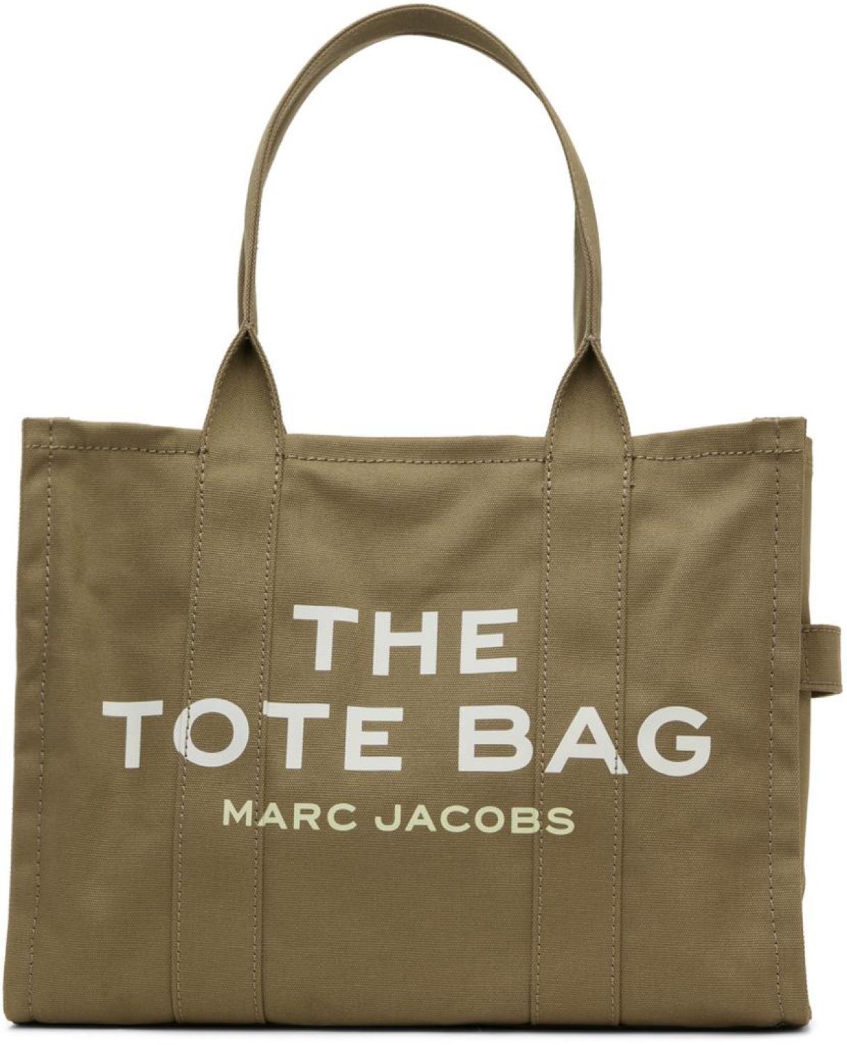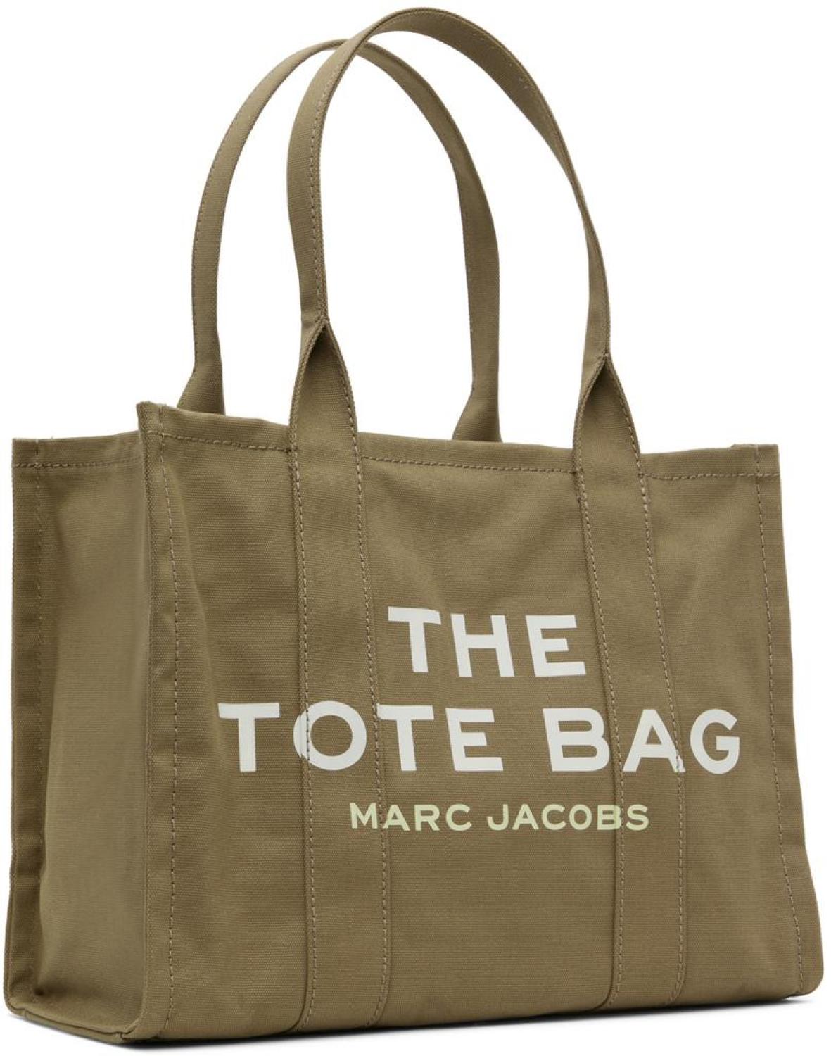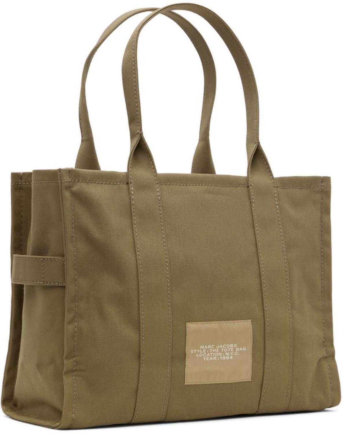 Cotton canvas tote in green. Text and logo printed in white at face.