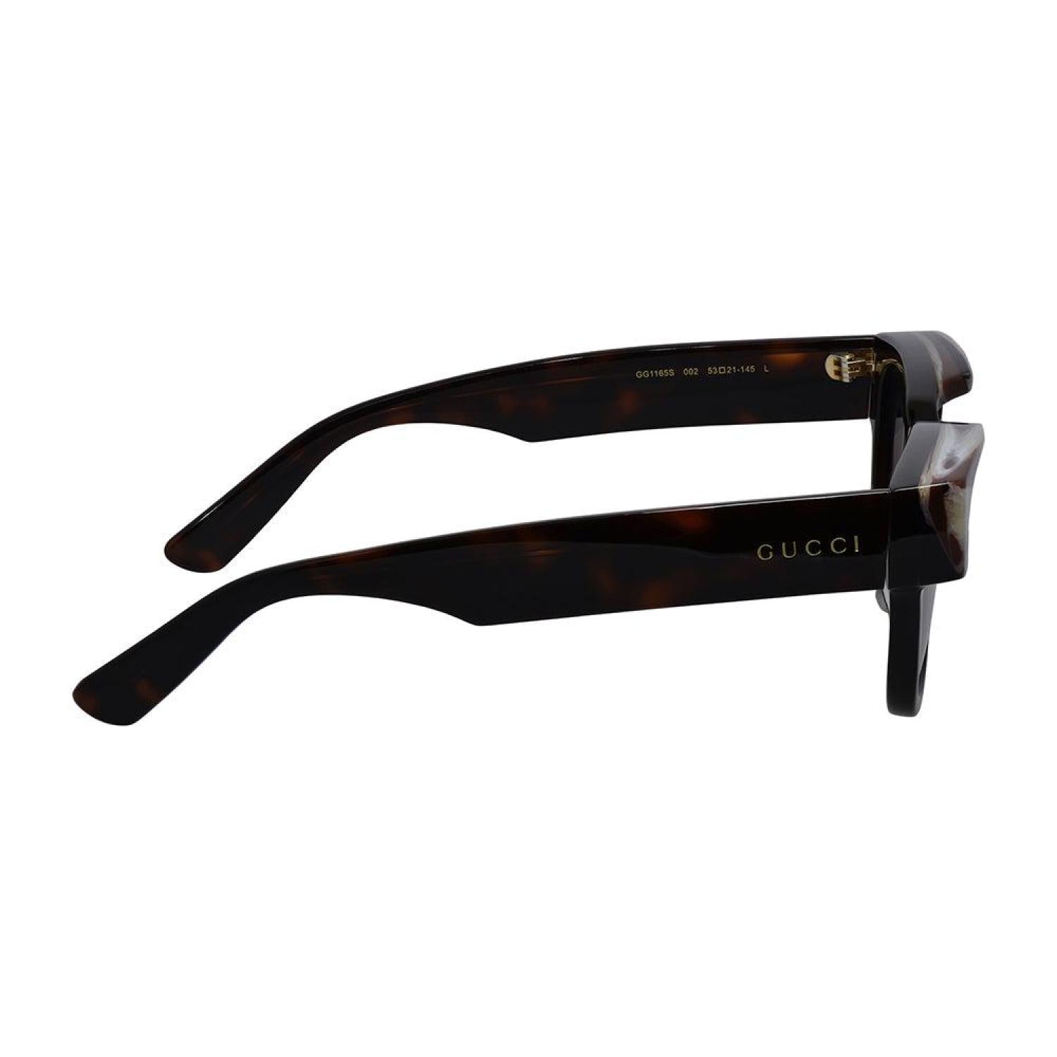 Gucci GG 1165S 002 Mens Havana SunglassesFrame Color - HavanaFrame Style - RoundFrame Material - PlasticLens Color - Protection - UV ProtectedIncludes - Gucci box, case, cloth and paperwork *may vary from pictureSize - Lens 53 mm x bridge 21 mm x arms 145 mm All measurements may vary