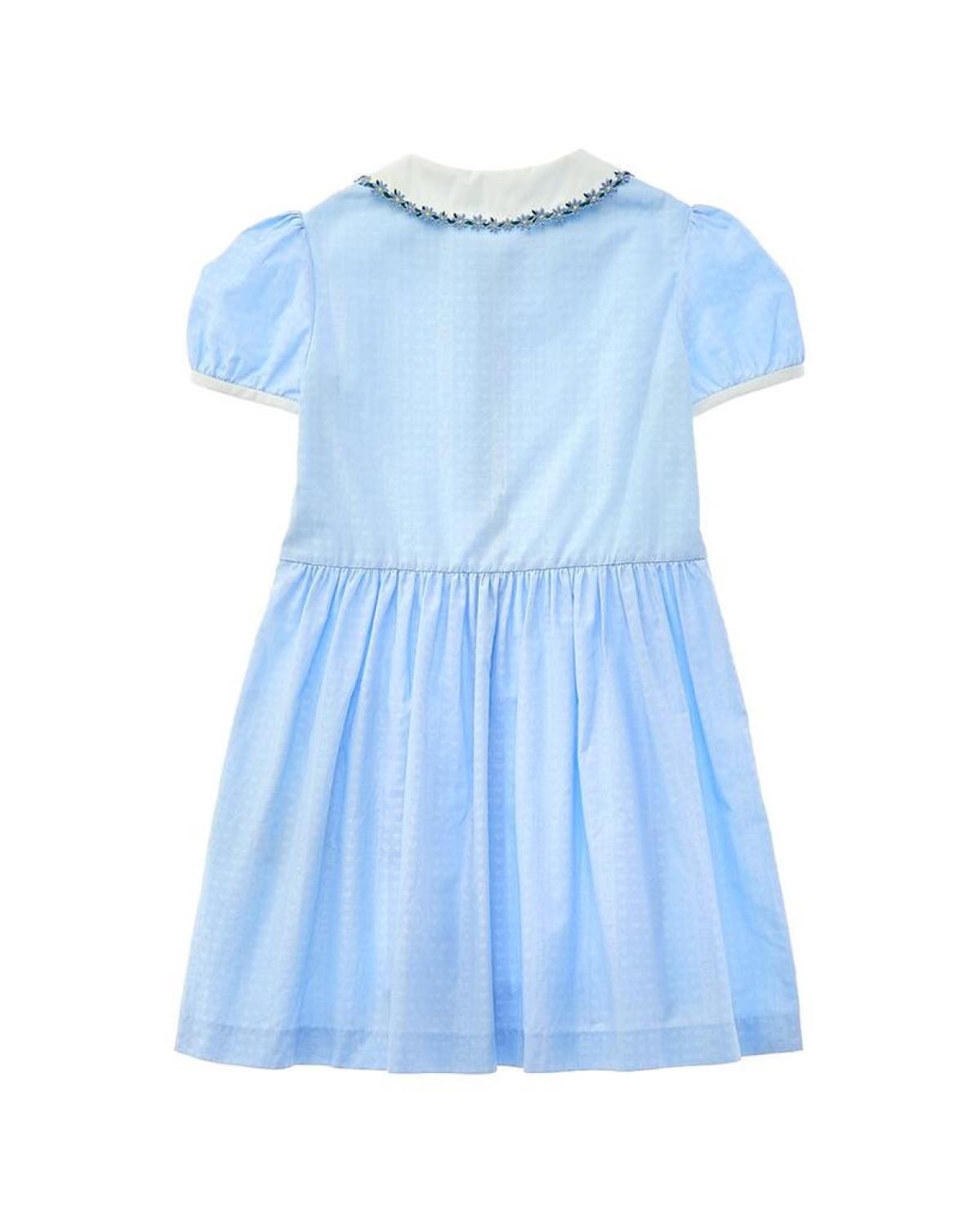 • Introducing the Gucci Guccily Stripe Poplin Dress - a stunning addition to any girl's wardrobe. Exuding the essence of Italian luxury, Gucci is a brand known for its eclectic and coveted designs. This dress, made in Italy with utmost craftsmanship, embodies the brand's distinct aesthetic.The Guccily Stripe Poplin Dress features a beautiful light blue hue, perfectly complemented by a charming Peter Pan collar and delicate floral embroidery. Its button-front design adds a touch of sophistication, making it a versatile piece for any occasion.Crafted with the utmost care, this dress is made from 100% cotton for a comfortable and breathable fit. The contrast fabrics consist of 96% cotton and 4% elastane, while the exquisite embroidery is created from 100% polyester. To keep this dress looking its best, simply machine wash it.When you purchase this dress, rest assured that our products are 100% genuine. While in some cases, we source merchandise from trusted independent suppliers, we always stand by the authenticity of every product sold on our site.Elevate your little one's style with the Gucci Guccily Stripe Poplin Dress. Discover Italian luxury redefined today for your fashion-forward child.