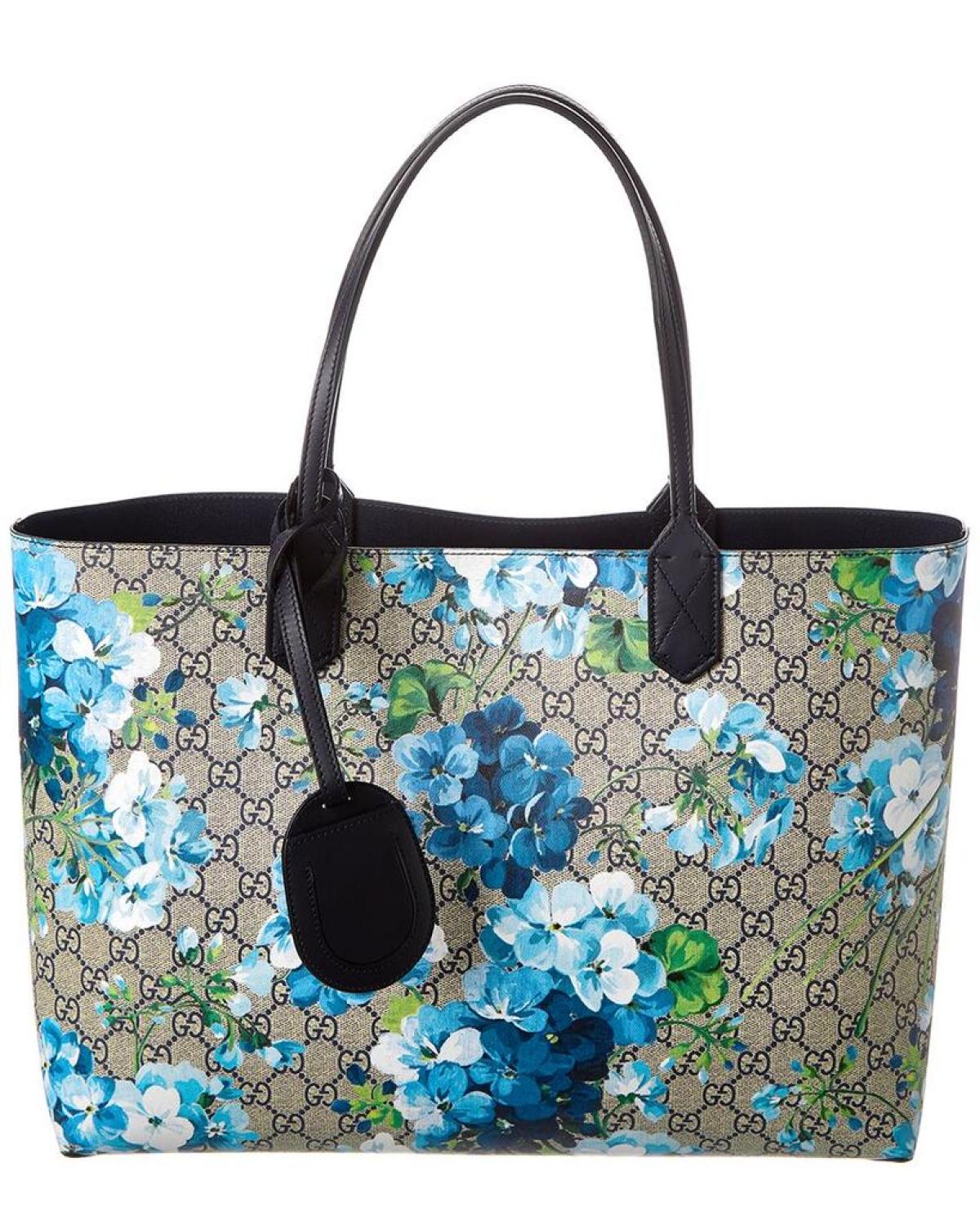 • Price As Marked About The Brand - Eclectic And Coveted. Italian Luxury Redefined. Made In Italy Reversible Gg Blooms Supreme Canvas & Leather Tote In Gg Blooms Supreme Canvas And Black Leather; Reverses To Black Coated Canvas And Leather With Logo Charm Measures 17In Wide X 11.5In High X 5In Deep Top Handles Drop 8In Open Top Please Note - All Measurements Were Taken By Hand And Are Approximate; Slight Variations May Occur. Our Products Are 100% Genuine. In Some Cases We Purchase Merchandise From Trusted Independent Suppliers And Not Directly From The Brand Owner. In All Cases We Stand By The Authenticity Of Every Product Sold On Our Site.