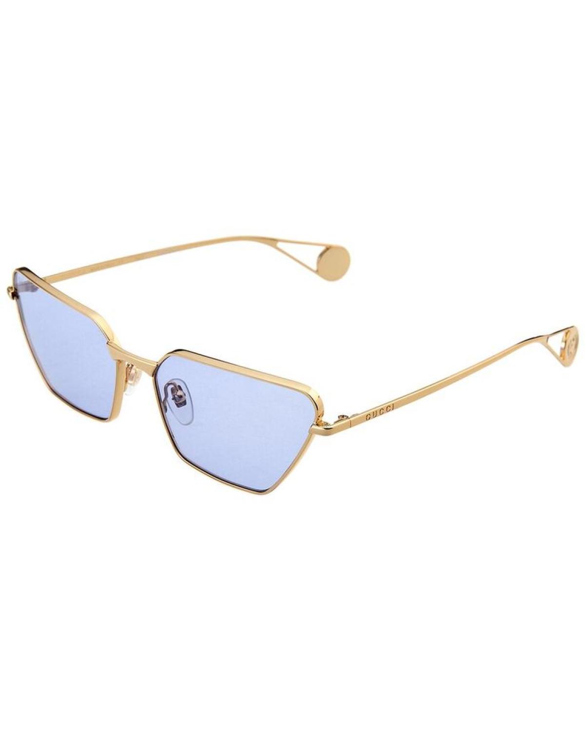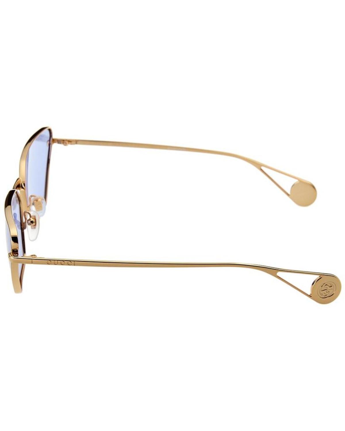 Introducing the Gucci Women's GG0538S 63mm Sunglasses - the perfect addition to any fashionable woman's accessory collection. As a brand, Gucci is known for its eclectic and coveted style that has redefined Italian luxury. These sunglasses have a trendy cat eye shape that beautifully complements those with oval, round, diamond, triangle or oblong shaped faces. The frame is a striking gold blue color with blue lenses that make for a bold and stylish statement. These sunglasses are made in Italy and feature a 63mm wide lens, 17mm wide bridge, and 140mm long arms. The model number is GG0538S-30007777006. At our store, we guarantee that our products are 100% genuine. In some cases, we purchase merchandise from trusted independent suppliers and not directly from the brand owner. Nonetheless, we stand by the authenticity of every product sold on our site. Get your hands on these fashionable and authentic Gucci Women's GG0538S 63mm Sunglasses today!