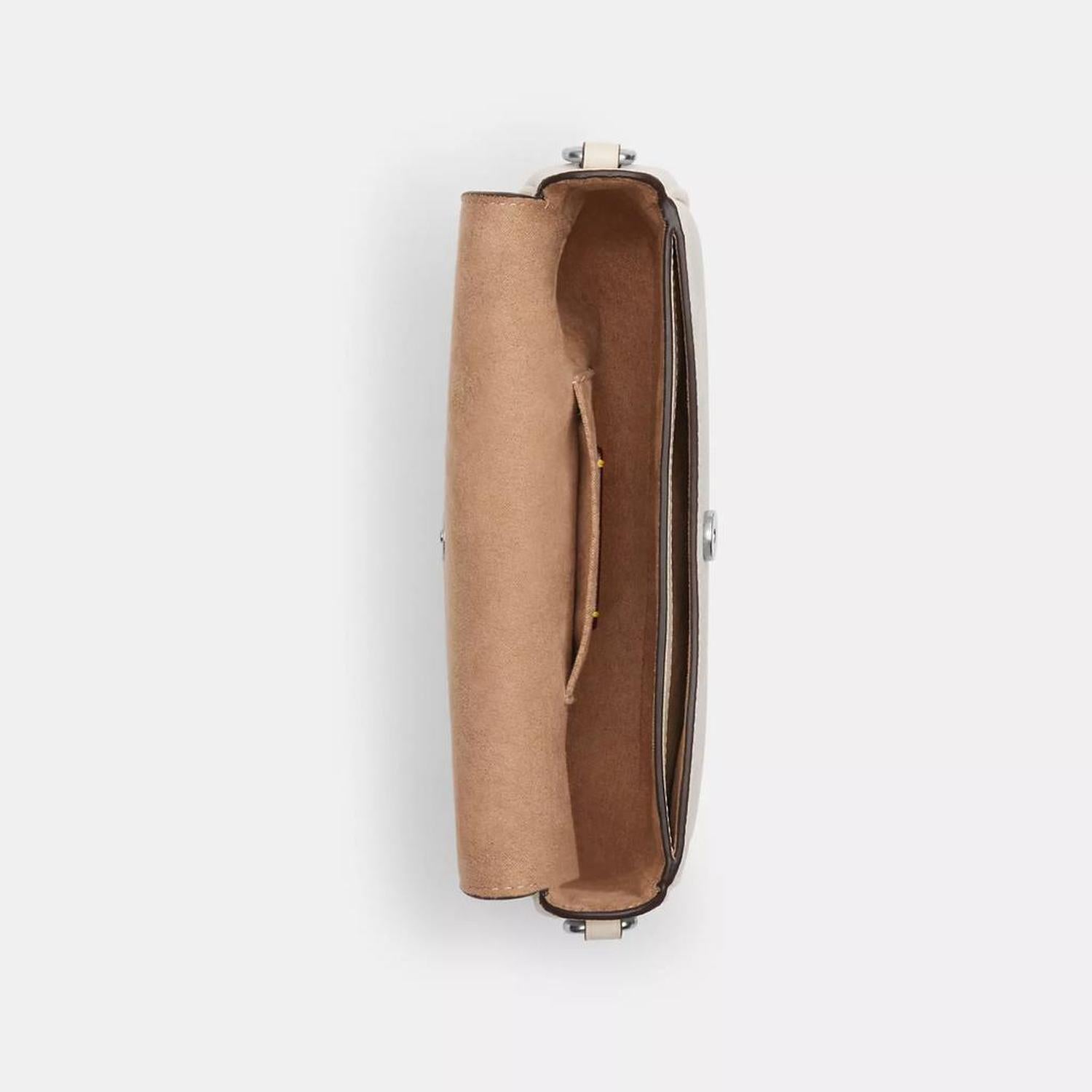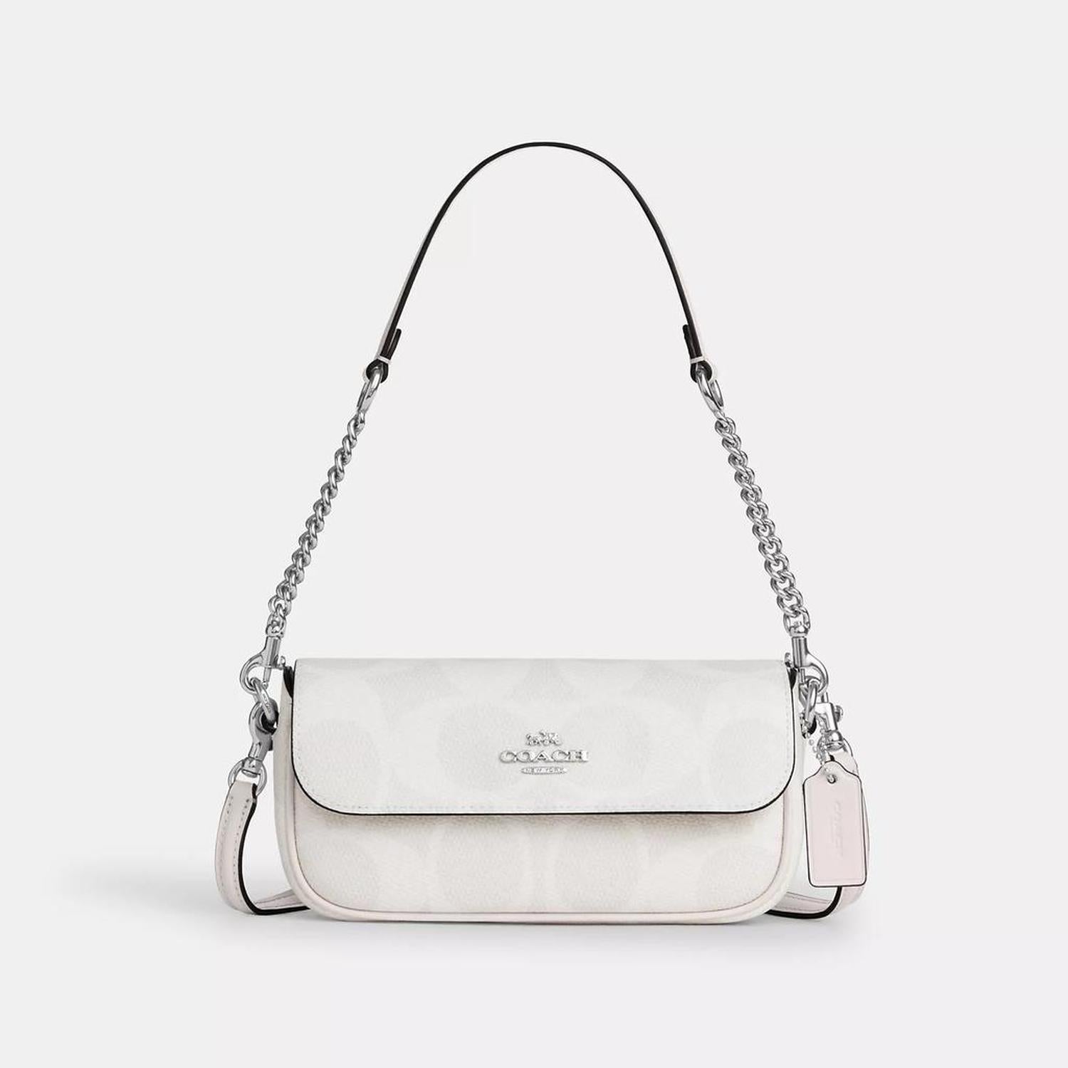 Signature coated canvas and smooth leather Inside open pocket Snap closure fabric lining Detachable handle with 8 1/4 drop Outside open pocket Detachable strap with 22 1/2 drop for shoulder or crossbody wear 7 3/4 (L) x 4 1/4 (H) x 2 (W) Style No. CAN70 | Coach Outlet Hailey Flap Bag In Signature Canvas - White