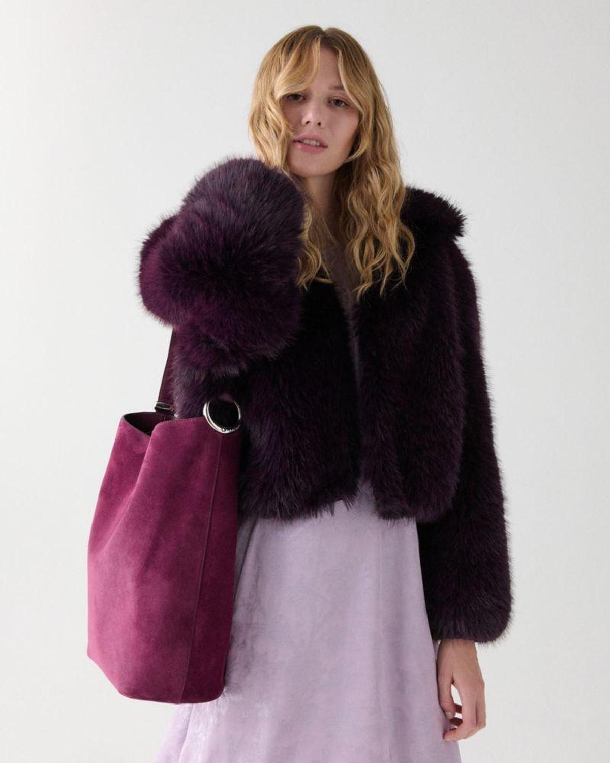 Measurements 5.7" W x 15" H Features Logo: embossed ring hardware Magnetic snap closure Adjustable shoulder strap Imported Materials Suede Lining: twill Smooth leather Suede Style Number KN281