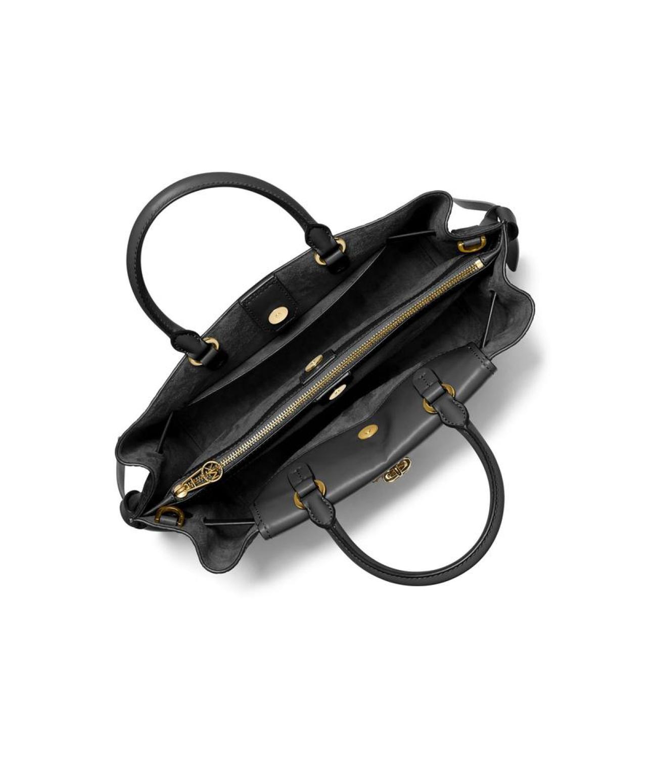 With exterior back and front snap pockets, the MICHAEL Michael Kors® Hamilton Legacy Large Belted Satchel has ample space to store all your essentials. The handle on top makes it easy to carry.