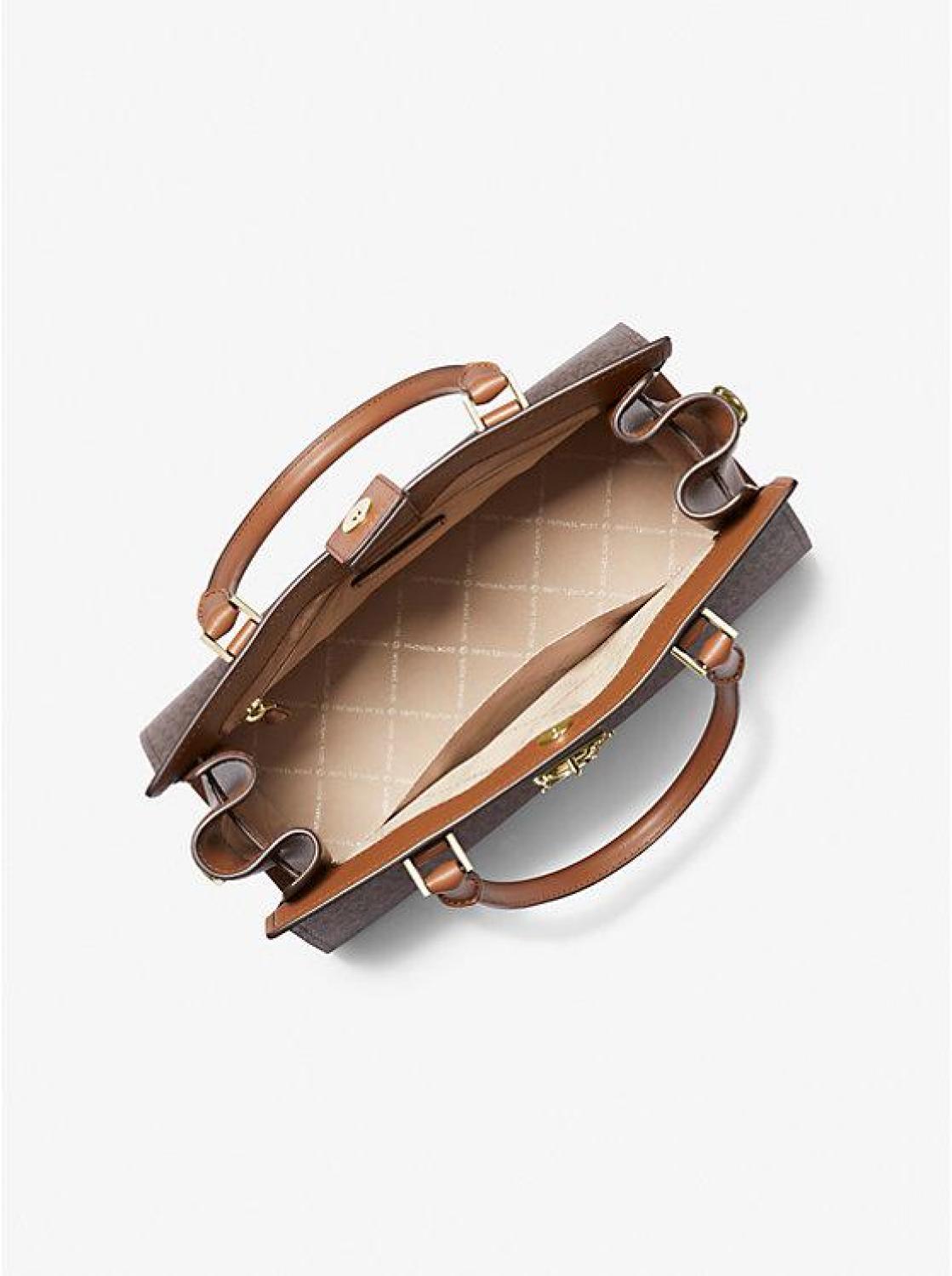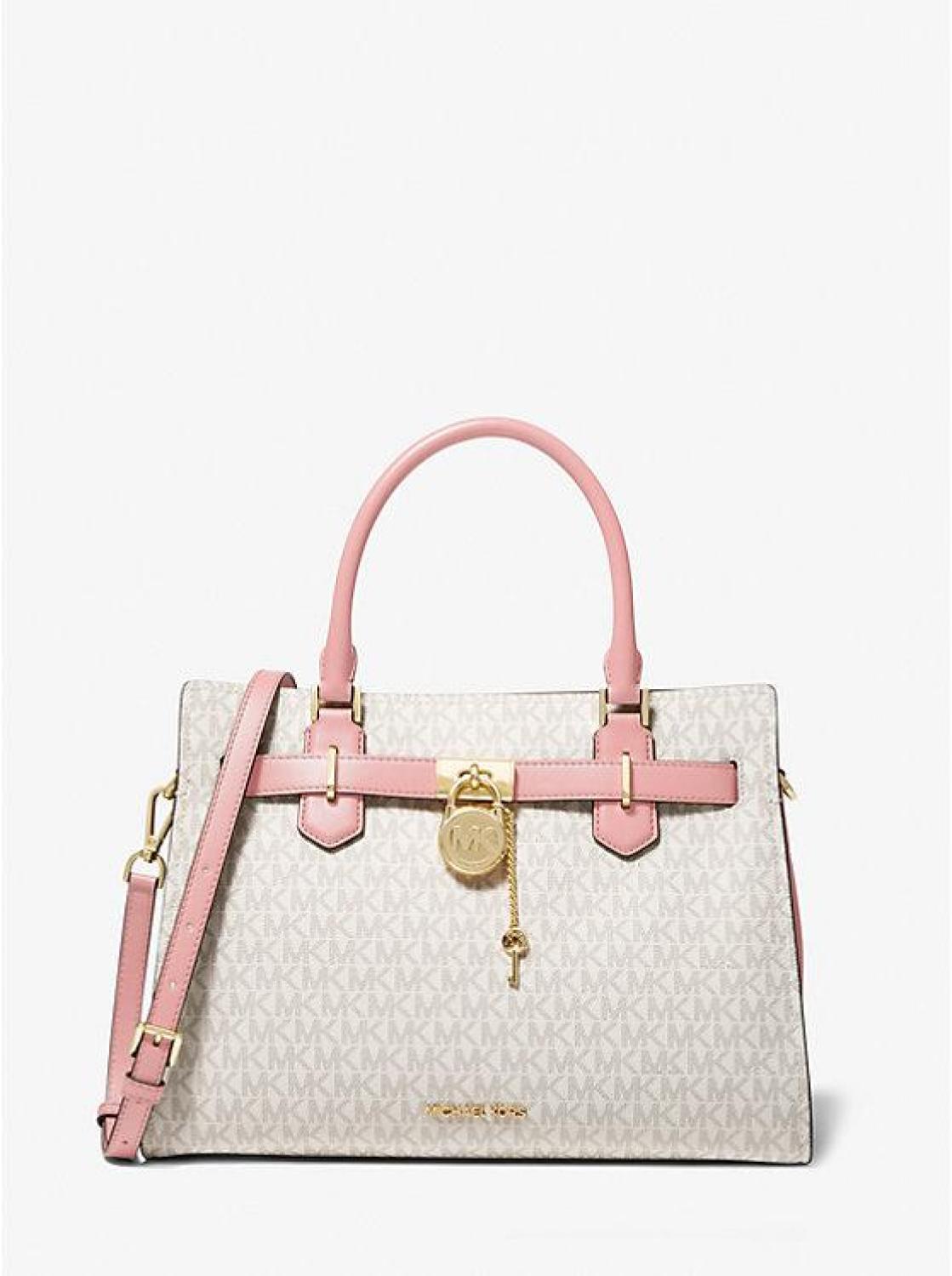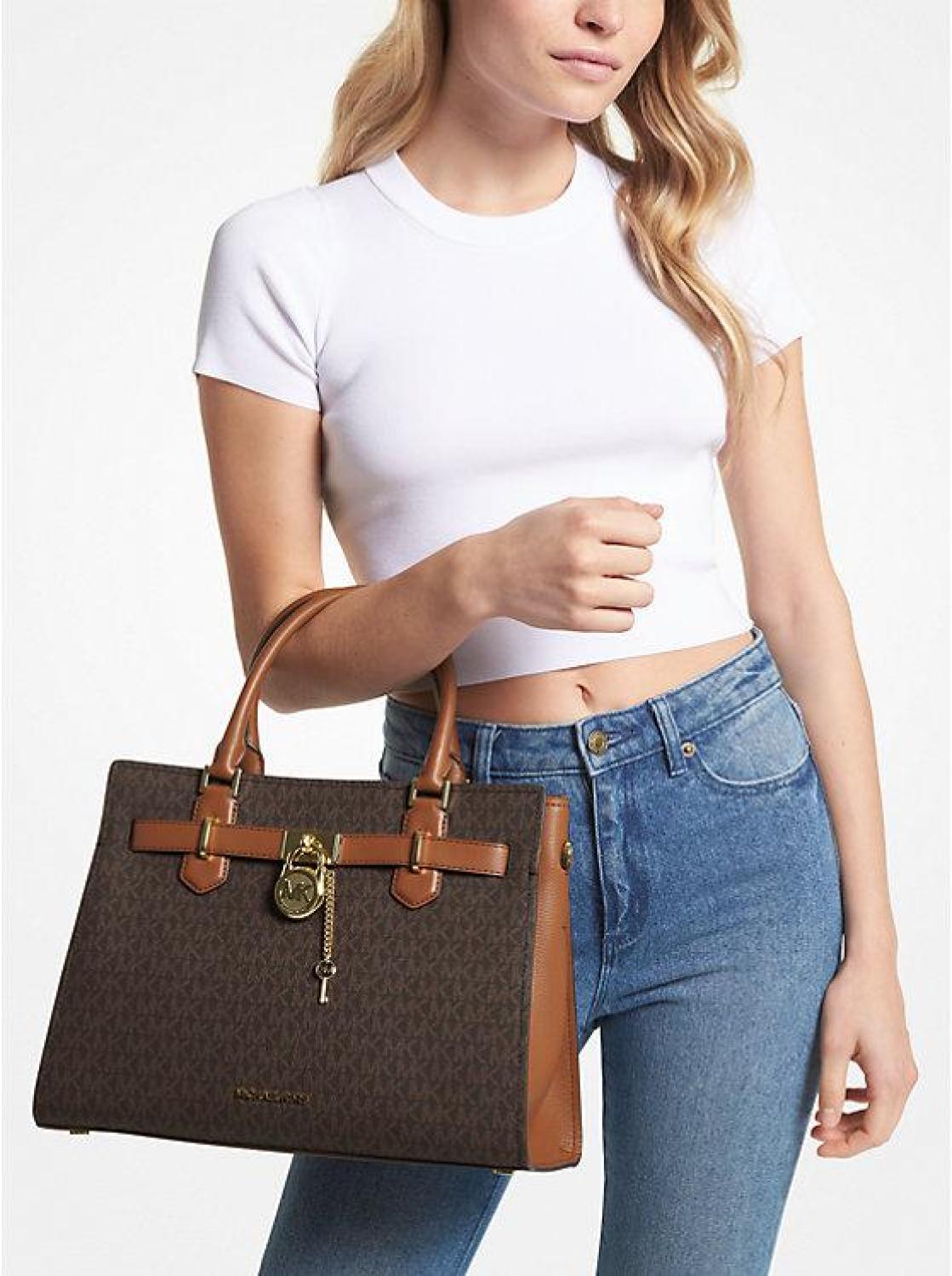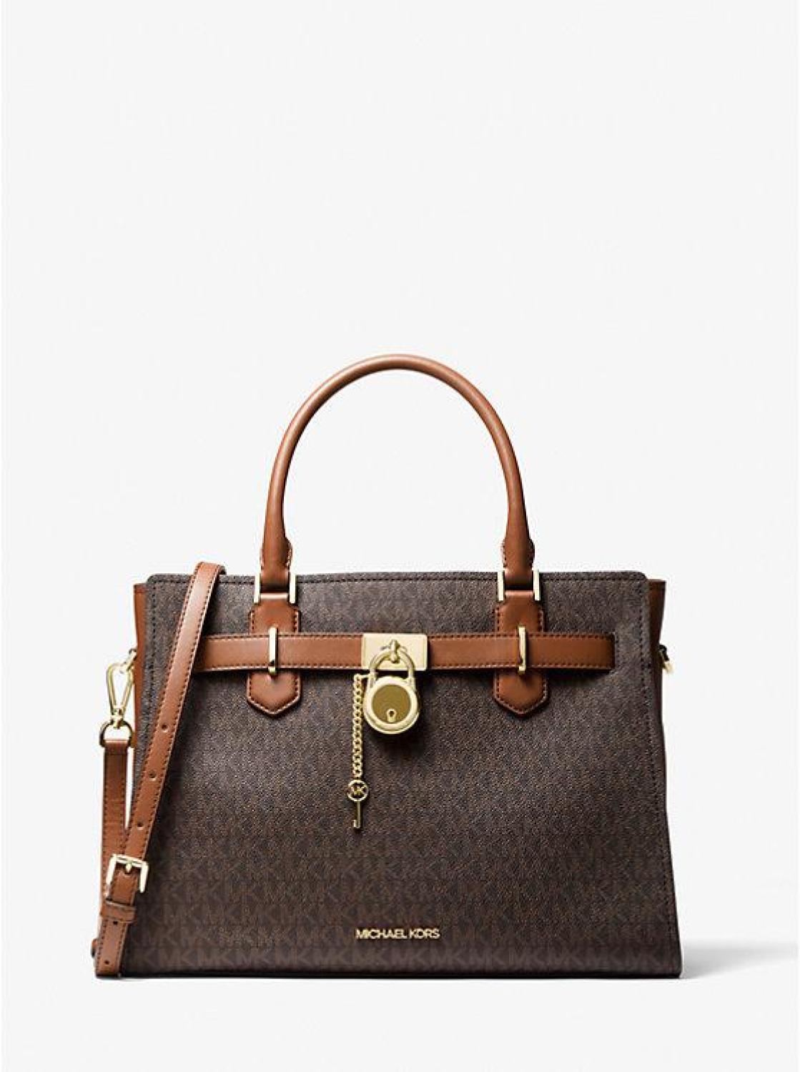 • The Hamilton is a carefully crafted staple you’ll reach to for years to come. Defined by a polished padlock charm, this Signature-print satchel features a belted silhouette that can be adjusted in shape to fit all your essentials. Carry it by the top handle or attach the strap to wear it crossbody.