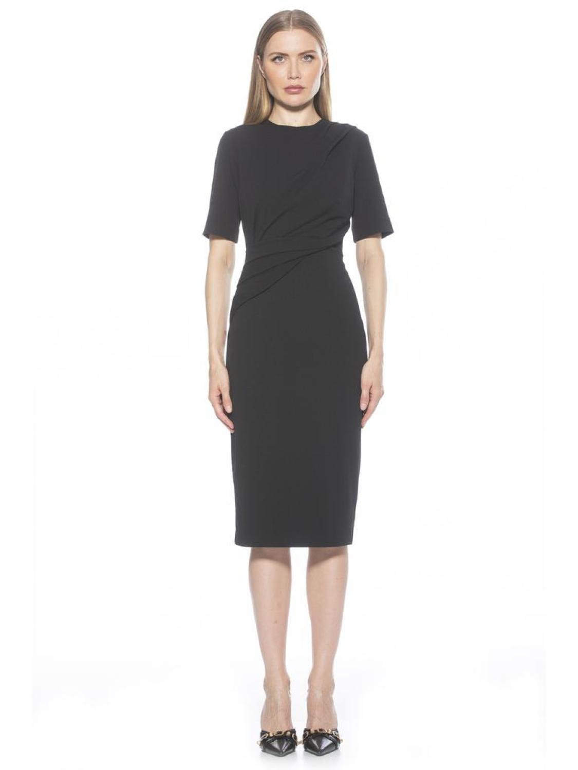 • Introducing the Harper Dress, a sophisticated, knee-length cocktail dress. This tasteful garment combines a classic crew neck look with sleek short sleeves, providing the perfect workwear dress. Crew Neck Short Sleeve Cocktail Dress 95% Polyester, 5% Spandex Lining - 100% Polyester Machine Wash Imported Style D5020
