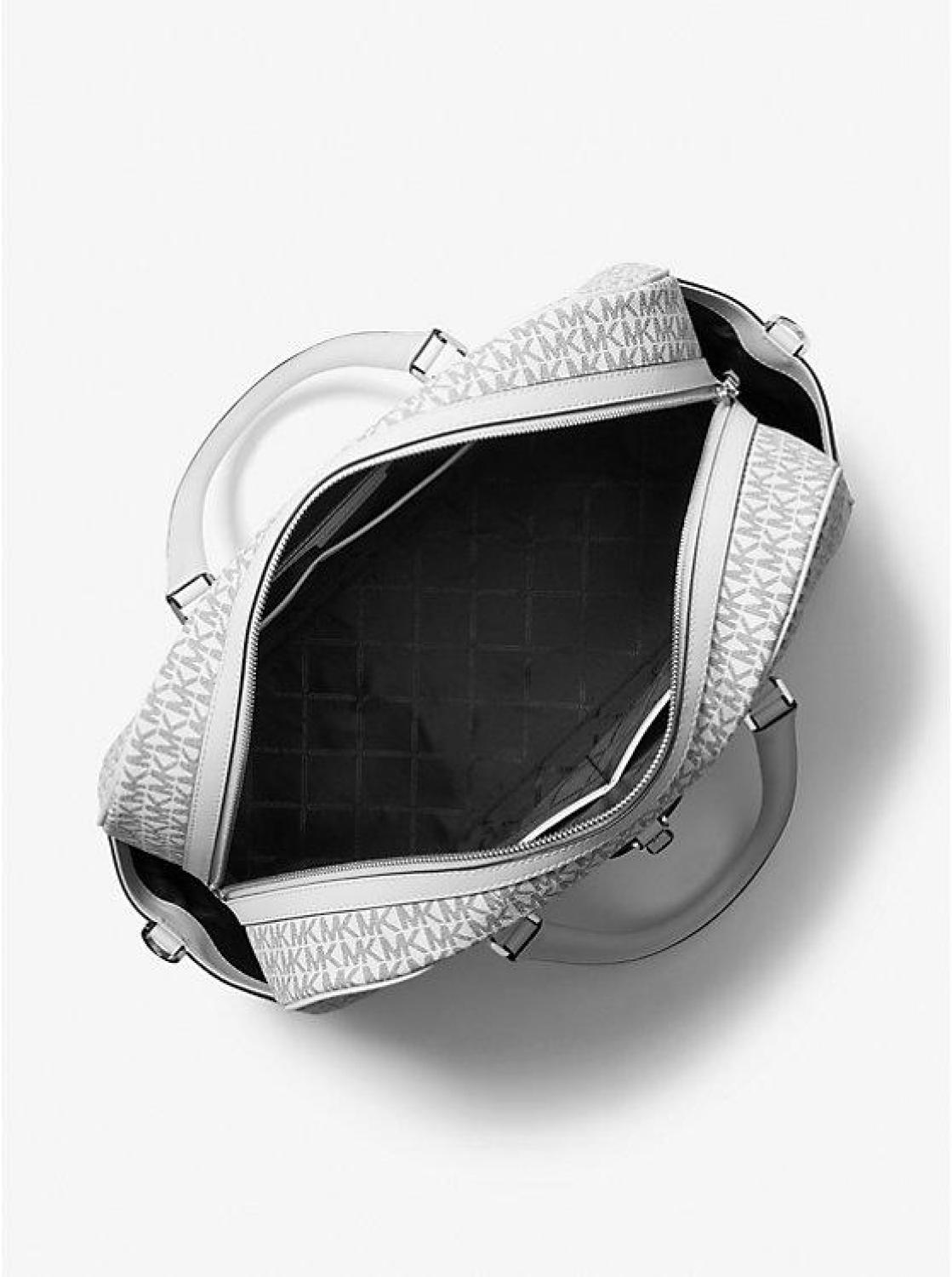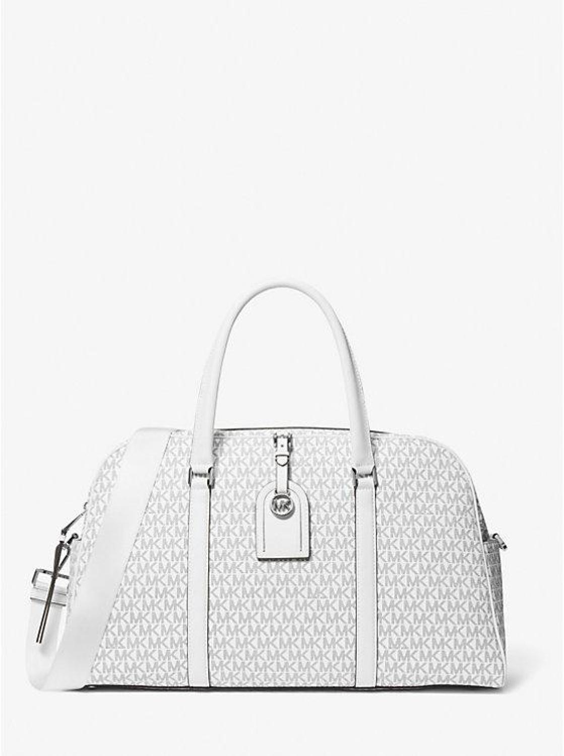 It’s time for your next great escape. Crafted in our iconic Signature print with smooth leather accents, this weekender bag is roomy enough to store all the essentials, yet sleek enough to tote easily wherever you go. The inside pockets will keep smaller items—like your wallet or headphones—accessible. Carry it by the top handles or by the adjustable shoulder strap. Weekender bag Logo-print canvas 89.4% coated canvas/9.6% polyester/1% polyurethane Trim: 100% leather Trim 2: 100% nylon Silver-tone hardware 18.5”W X 10.25”H X 8.25”D Handle drop: 4.5” Exterior details: back snap pocket Interior details: 2 back slip pockets, back zip pocket, 2 front slip pockets Lining: 100% polyester Zip fastening Imported Weekender bag Logo-print canvas 89.4% coated canvas/9.6% polyester/1% polyurethane Trim: 100% leather Trim 2: 100% nylon Silver-tone hardware 18.5”W X 10.25”H X 8.25”D Handle drop: 4.5” Exterior details: back snap pocket Interior details: 2 back slip pockets, back zip pocket, 2 front slip pockets Lining: 100% polyester Zip fastening Imported