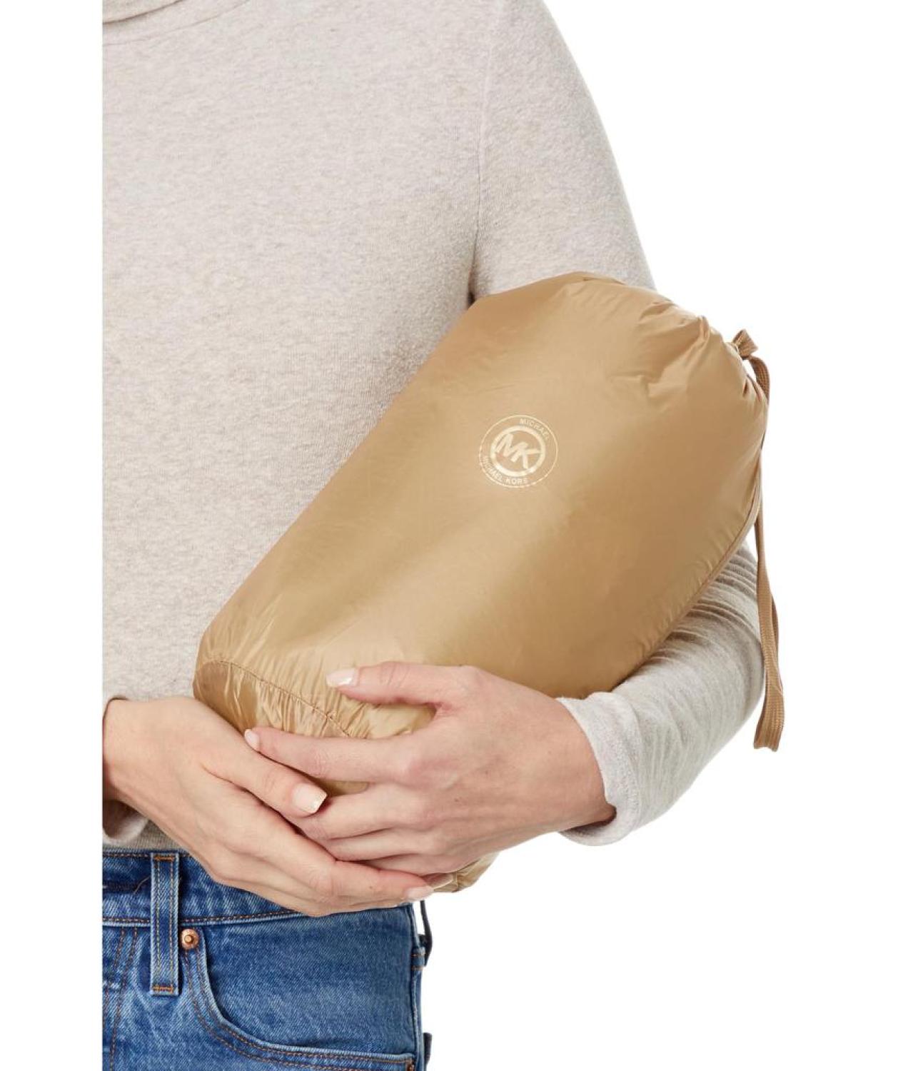 • Kick your adventure style up a notch while adding some more warmth and comfort to your day by opting for the MICHAEL Michael Kors® Hooded Long Quilt Puffer M426079C68. Featuring a sleek and quilted design, this waterproof puffer jacket keeps you dry during those snowy days. It is designed with an attached hood, long sleeves, two zippered hand pockets with button accents, and concealed zippered with snap-button front closure.