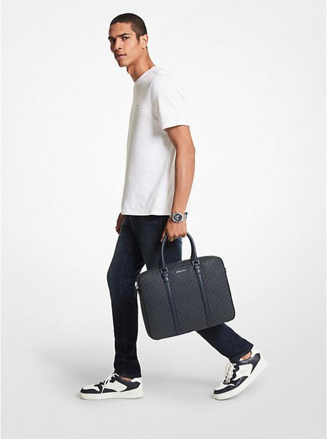 Update your office-ready accessories with the Hudson briefcase. Crafted from our Signature-print canvas with smooth leather trim, this sleek carryall offers a generous interior equipped to hold your tablet, important documents, phone and more. Carry it by the top handle between meetings, or wear it crossbody for hands-free ease while commuting.