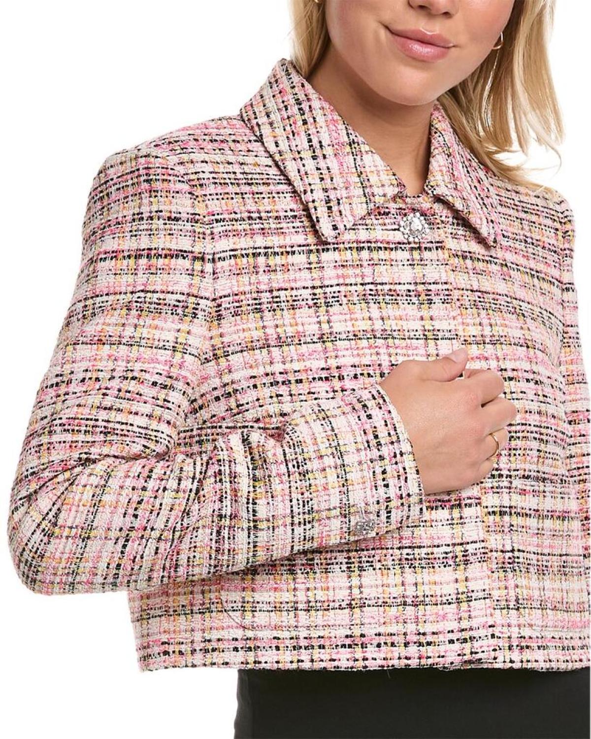 Introducing the Hugo Boss Jacket, a stylish addition to your wardrobe that exudes elegance and sophistication. This stunning blazer, designed specifically for women, is perfect for making a strong statement in both businesswear and athleisure settings. Crafted with meticulous attention to detail, this jacket features a tweed design with an open miscellaneous pattern, giving it a unique and fashionable look. The spread collar and button cuffs add a touch of class, while the button front allows for easy and convenient closure.Measuring approximately 22 inches from shoulder to hem, this jacket has a tailored fit that flatters any silhouette. The model, standing at 5'11' and wearing a size 4, showcases its versatility. However, please note that measurements may slightly vary depending on the size chosen.Made from a blend of high-quality materials, including 50% cotton, 40% polyester, 2% viscose, 6% polyacrylic, and 2% other, this jacket offers both comfort and durability. To keep it looking its best, simply machine wash and hang to dry.Imported and bearing the esteemed Hugo Boss brand, known for its timeless and impeccable fashion, this jacket is a must-have for any fashion-forward individual. So why wait? Elevate your style with the Hugo Boss Jacket and showcase your individualist perspective effortlessly.