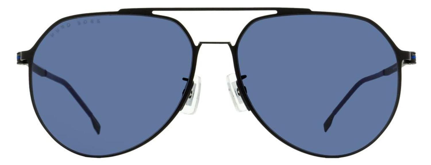 Hugo Boss Men's Pilot Sunglasses B1404FSK 003KU Matte Black/Blue 61mm