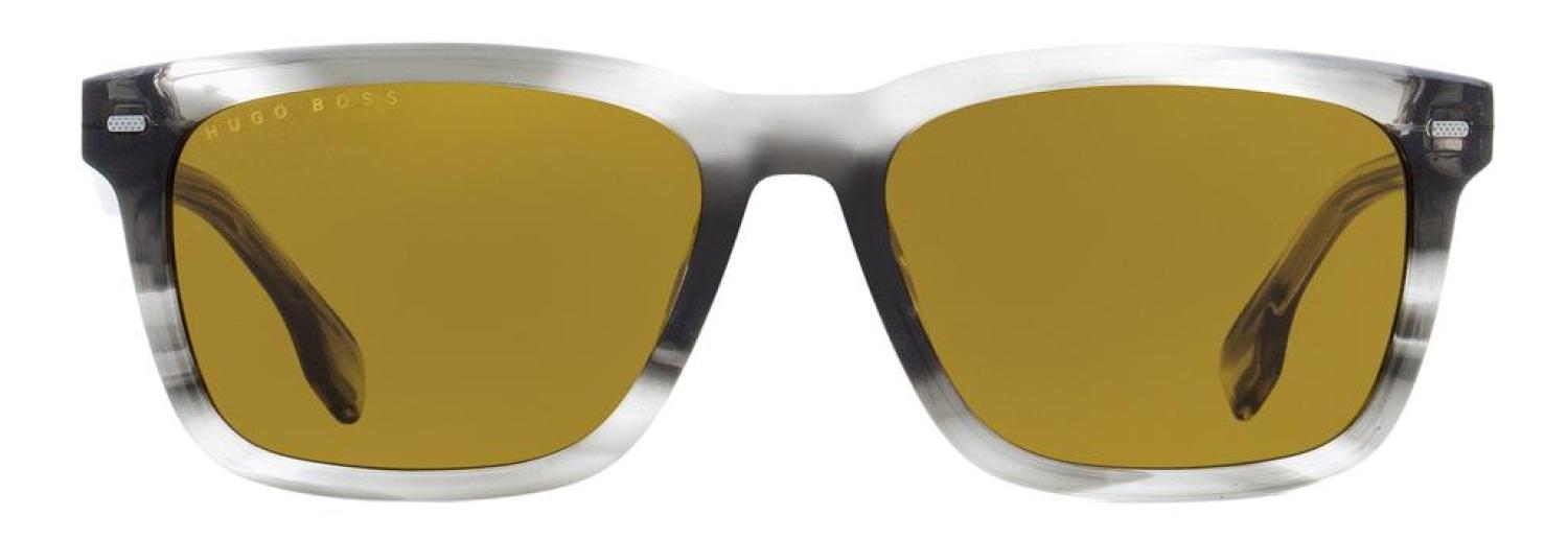 • The Boss by Hugo Boss 1318/S Sunglasses feature a classic rectangular shape suitable for men. The acetate frame is accented with transparent temples that reveal the textured metal structure of the frame. Hugo Boss is synonymous with contemporary designs that have a progressive urban look. Comfortable for everyday wear, Hugo Boss eyewear is versatile and functional. Providing 100% UV protection from the suns harmful rays these sunglasses are functional in addition to being fashionable. Frame Material - Plastic (Acetate)Frame Color - Striped GrayLens Color - BrownSize - 55-17-145Made in ChinaIncludes original case and cloth
