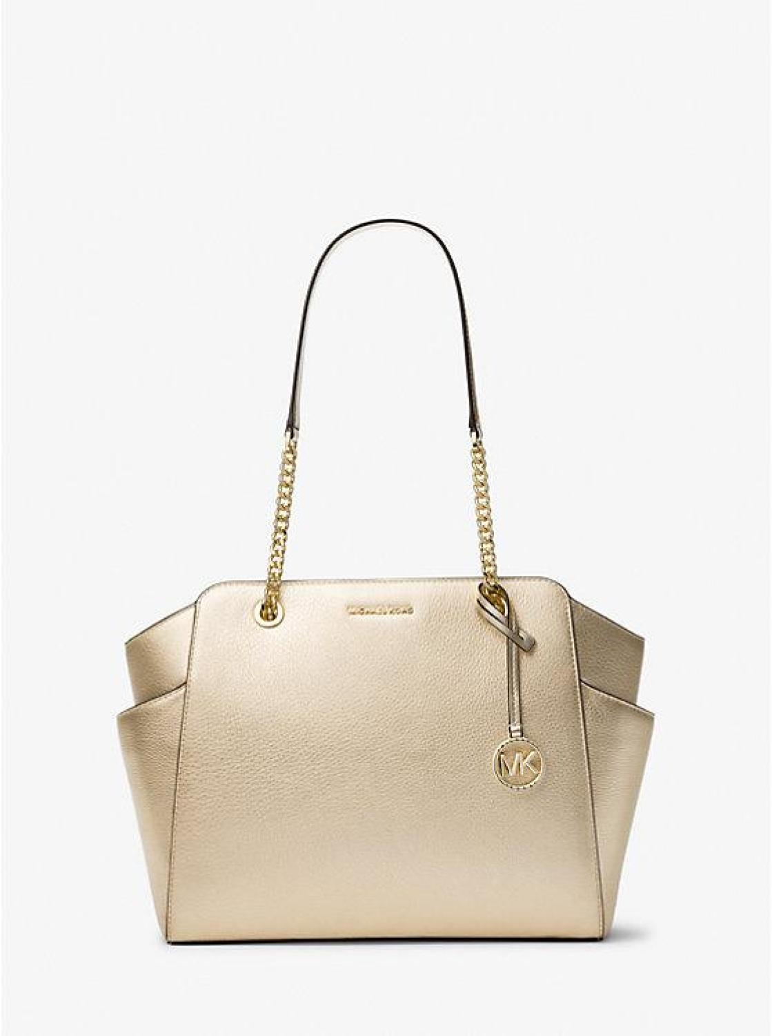 Jacquelyn Medium Metallic Pebbled Leather Tote Bag