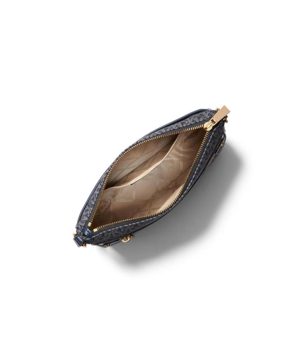 • Be a trendsetter carrying the MICHAEL Michael Kors® Jet Set Large North South Crossbody. Crafted from leather and nylon, this bag features zippered closure, detachable and adjustable strap, four interior slip-in's and one zippered pocket. It also comes with gold-tone exterior hardware, one snap pocket, and one zippered exterior pocket.