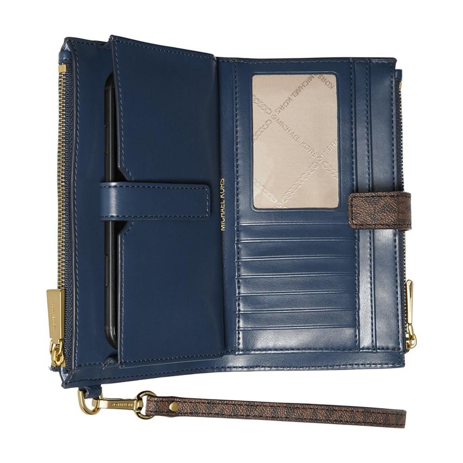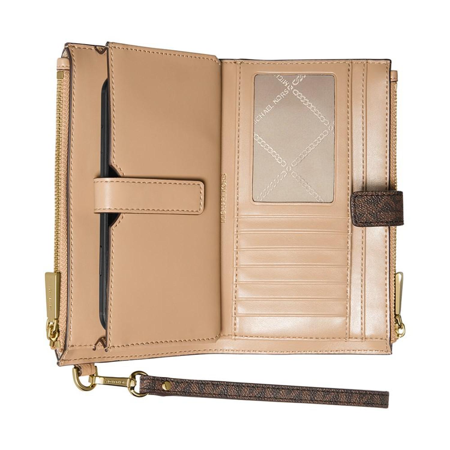 • If you are looking for the perfect wallet, you've found it. Full of features, toss the Jet Set Double Zip Wristlet by MICHAEL Micael Kors in your favorite handbag or wear it around your wrist with the strap.