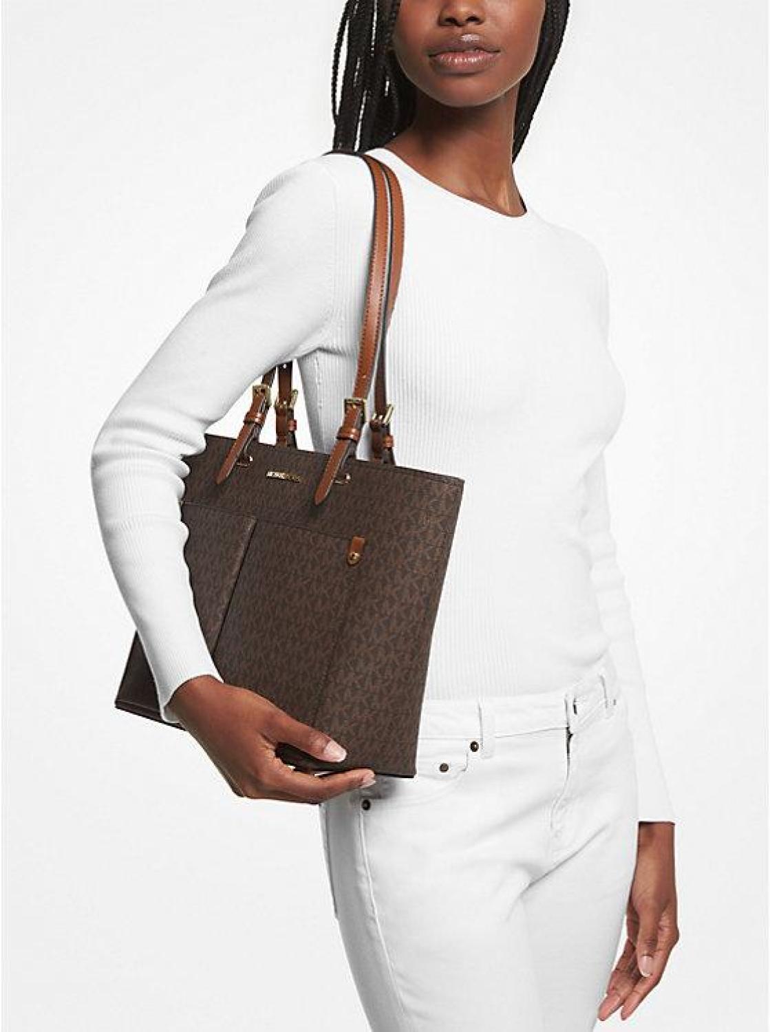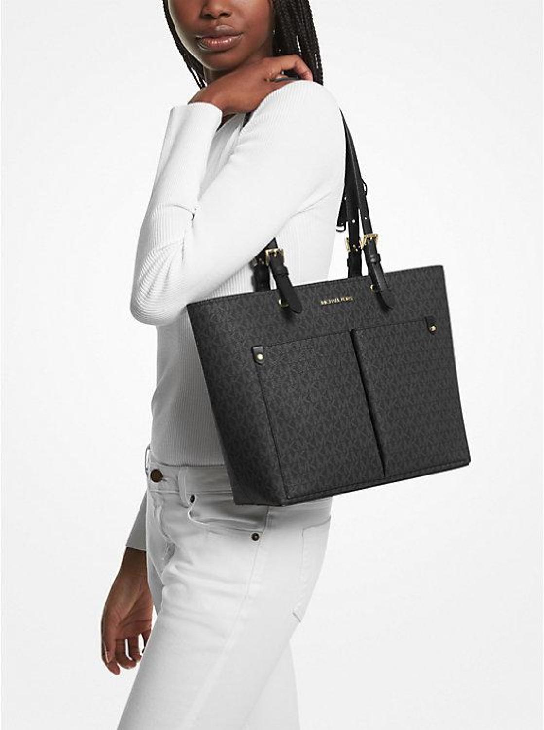 With just enough structure and a functional design, the Jet Set tote bag is a year-round essential. This Signature-print canvas carryall features exterior slip pockets that are sized to safely hold a phone, card case and umbrella, while the adjustable straps will easily slip over your shoulder. We think it’s a must-have accessory for morning commutes and weekend trips alike. Tote bag Logo-print canvas 89.4% coated canvas/9.6% polyester/1% polyurethane Gold-tone hardware 14.5”W X 10.25”H X 6.75”D Handle drop: 10.75” Exterior details: 2 front slip pockets Interior details: back zip pocket, 2 front slip pockets Lining: 100% polyester Zip fastening Imported Tote bag Logo-print canvas 89.4% coated canvas/9.6% polyester/1% polyurethane Gold-tone hardware 14.5”W X 10.25”H X 6.75”D Handle drop: 10.75” Exterior details: 2 front slip pockets Interior details: back zip pocket, 2 front slip pockets Lining: 100% polyester Zip fastening Imported