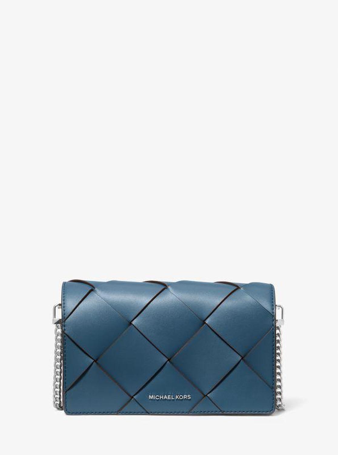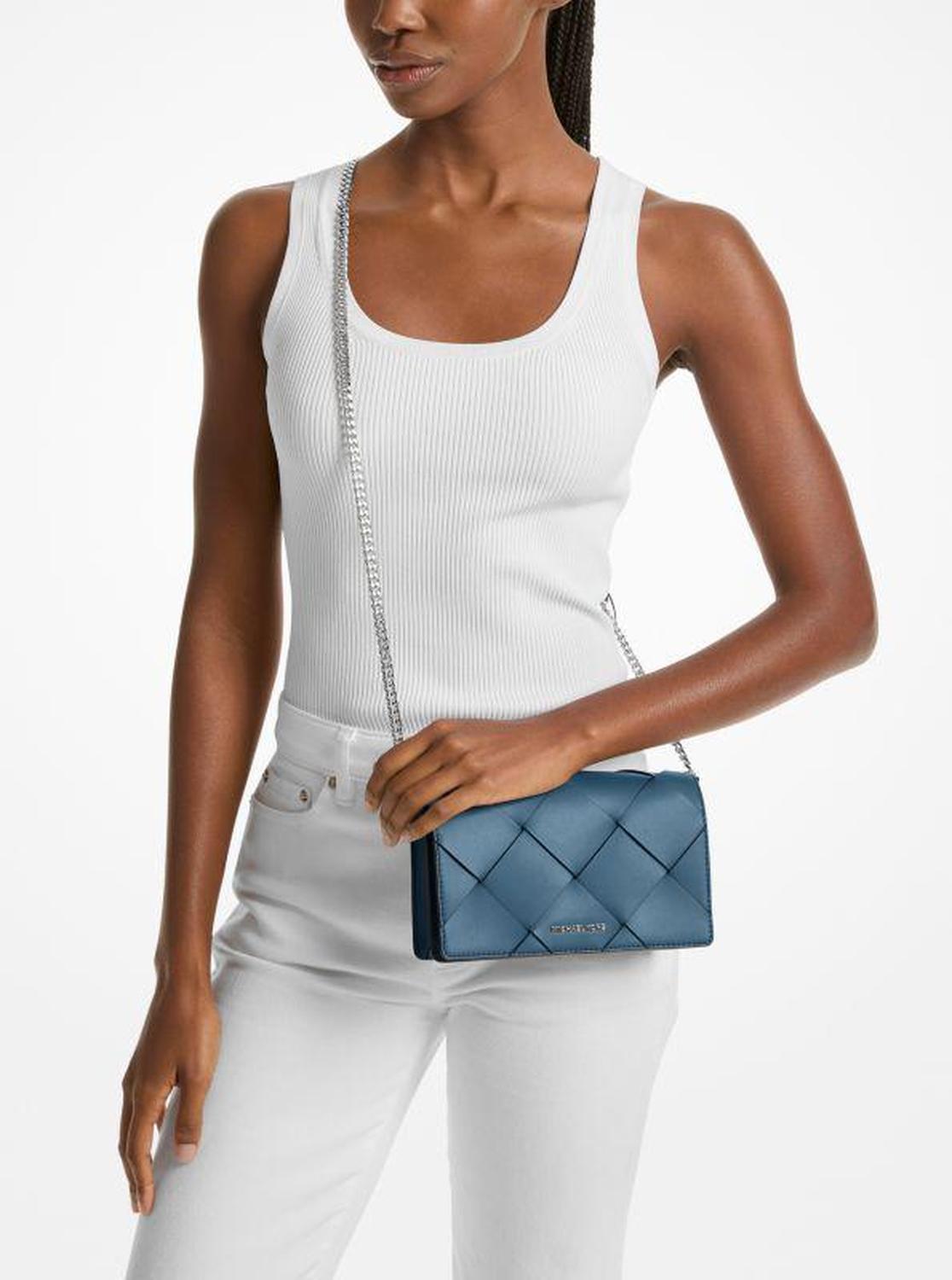 A glamorous take on an everyday accessory, the Jet Set bag features a woven-leather exterior and high-shine details. It’s well-sized to hold everyday essentials, and a removable strap provides the option to carry it as a clutch or wear it crossbody. Style it with a statement dress for a girl-about-town look. • Crossbody bag • Leather • 100% leather • Silver-tone hardware • 8.25"W X 5.25"H X 1.75"D • Exterior details: back slip pocket, detachable chain strap • Interior details: back slip pocket, front zip pocket • Lining: 100% polyester • Snap fastening • Dust bag included • Imported • Crossbody bag • Leather • 100% leather • Silver-tone hardware • 8.25"W X 5.25"H X 1.75"D • Exterior details: back slip pocket, detachable chain strap • Interior details: back slip pocket, front zip pocket • Lining: 100% polyester • Snap fastening • Dust bag included • Imported